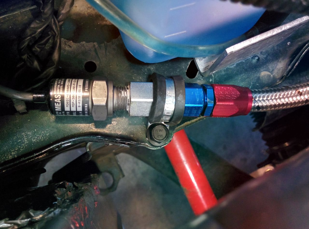 Then I did a long-term install of the fuel pressure sensor. -6AN hose for remote mounting: