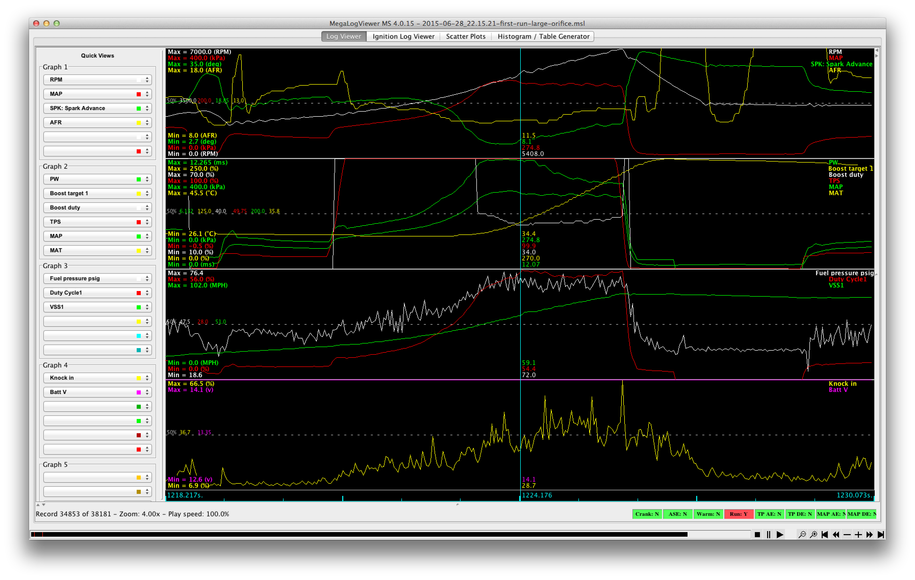After deciding to take the regulator out another day, we ran over to the gas station for more 100 octane. On the way there it was running really rich, which made no sense because we hadn't actually changed any settings in all that testing with the oscilloscope. Whatever, we ran the autotune on the way there and it took a ton of fuel out. Filled it up, got back in, started it and went to drive home and now it was really really lean.