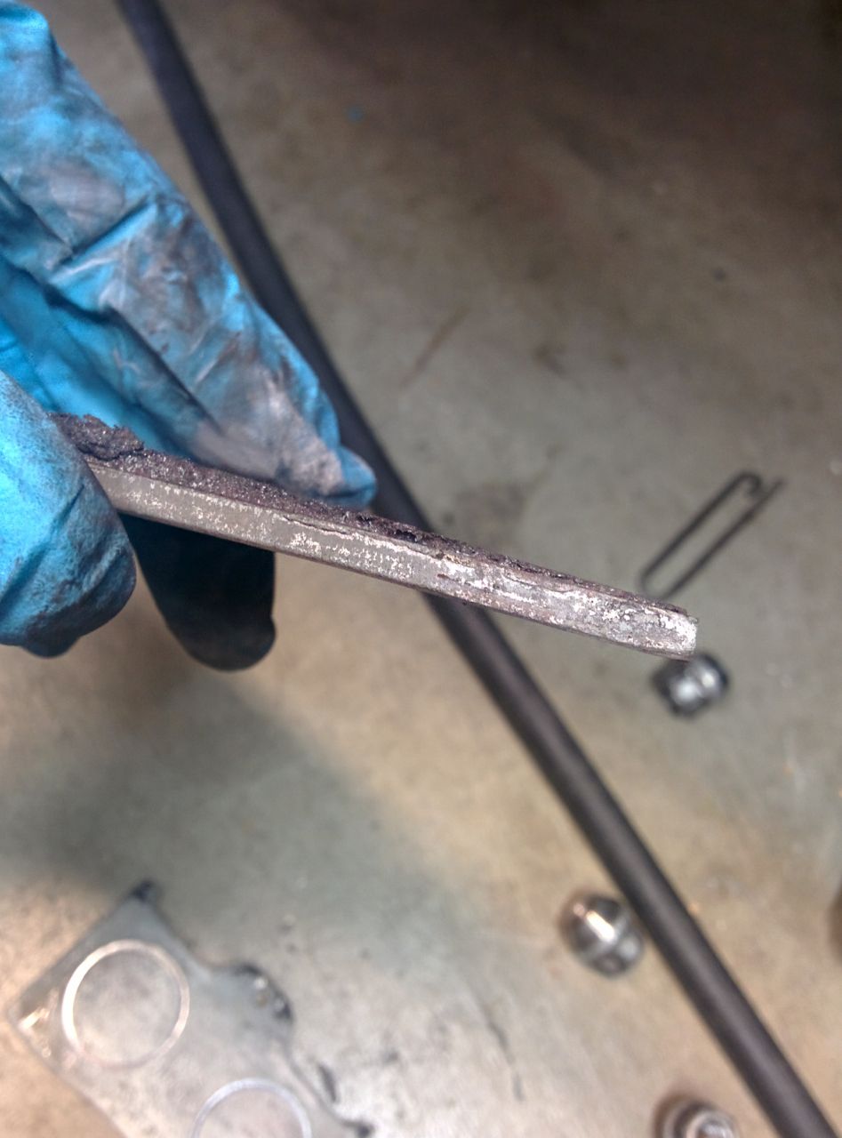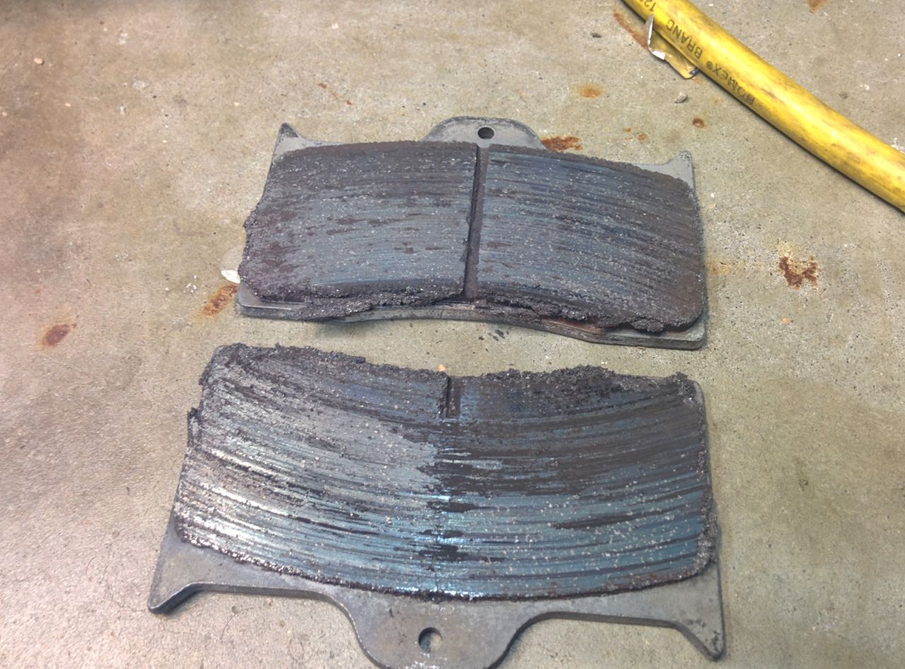 Looks like it was a good thing I didn't take that last session, these pads were almost to the backing plates. A total of 3 days on these pads (DTC-60s), 1 at Thunderhill West, 2 at Laguna. Laguna is just brutal on brakes.