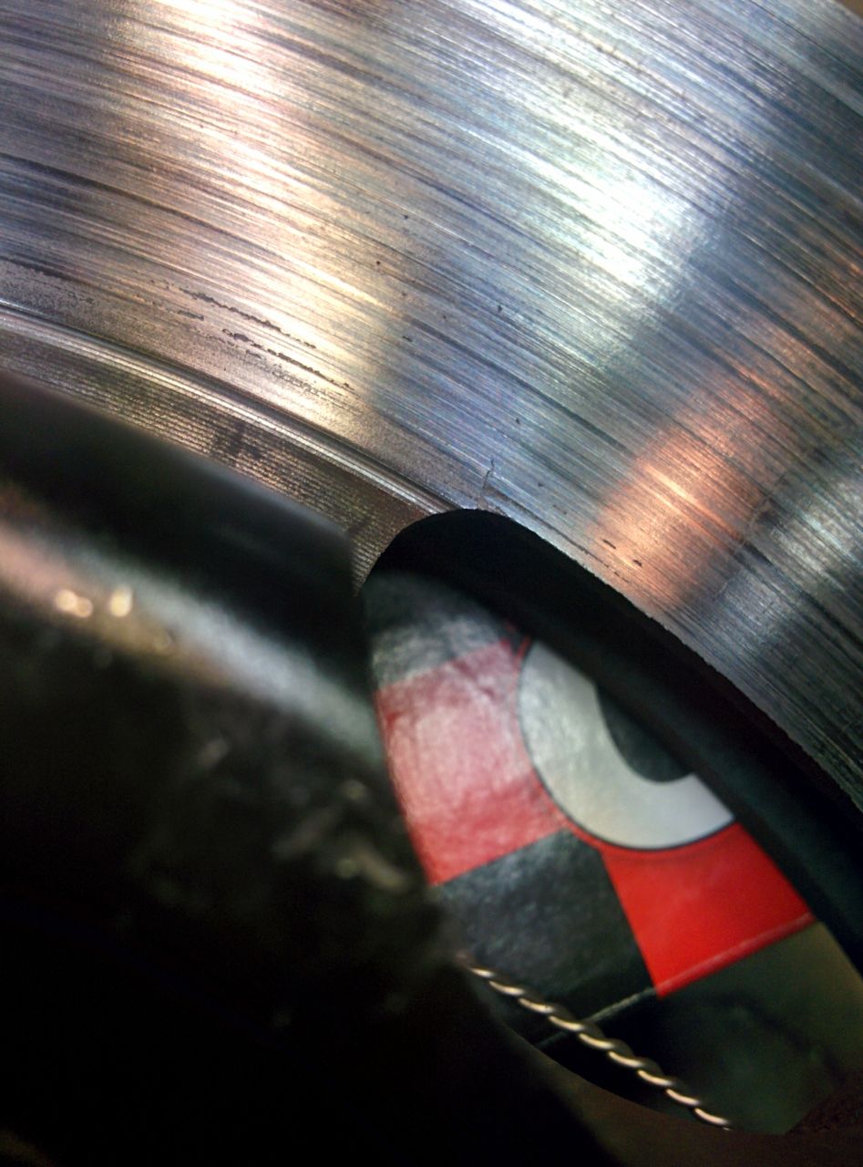 A small crack starting at the edge of the driver's side front rotor: