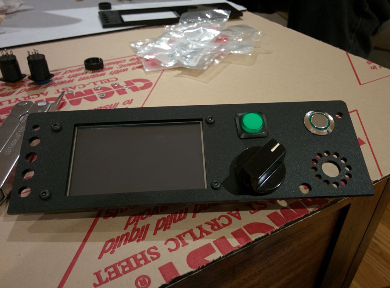 The first stab at the faceplate was upside down, so Chris flipped it in the model and went back to techshop and cut another. Man laser cutters are cool.