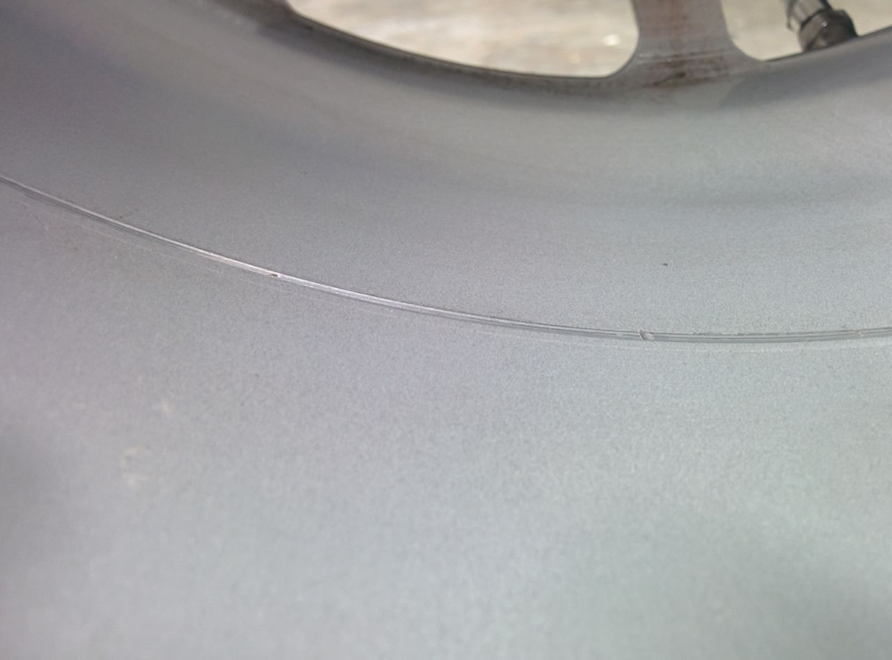 Unfortunately, the parking brake arms on the rear Wilwoods turn out to be too long, and have gouged up the wheels. Argh: