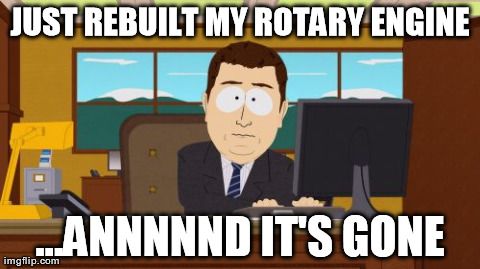 I have been watching rotary engine rebuild videos on youtube though. Wankel engine ****!