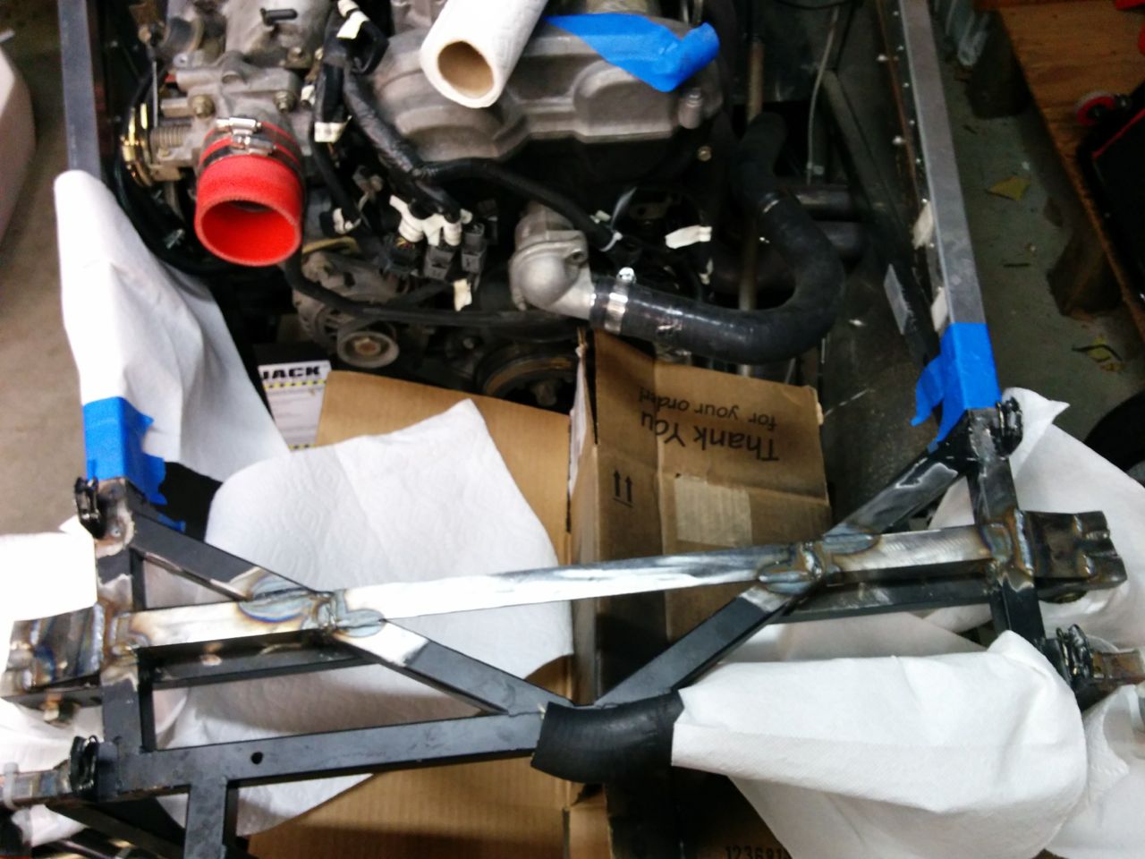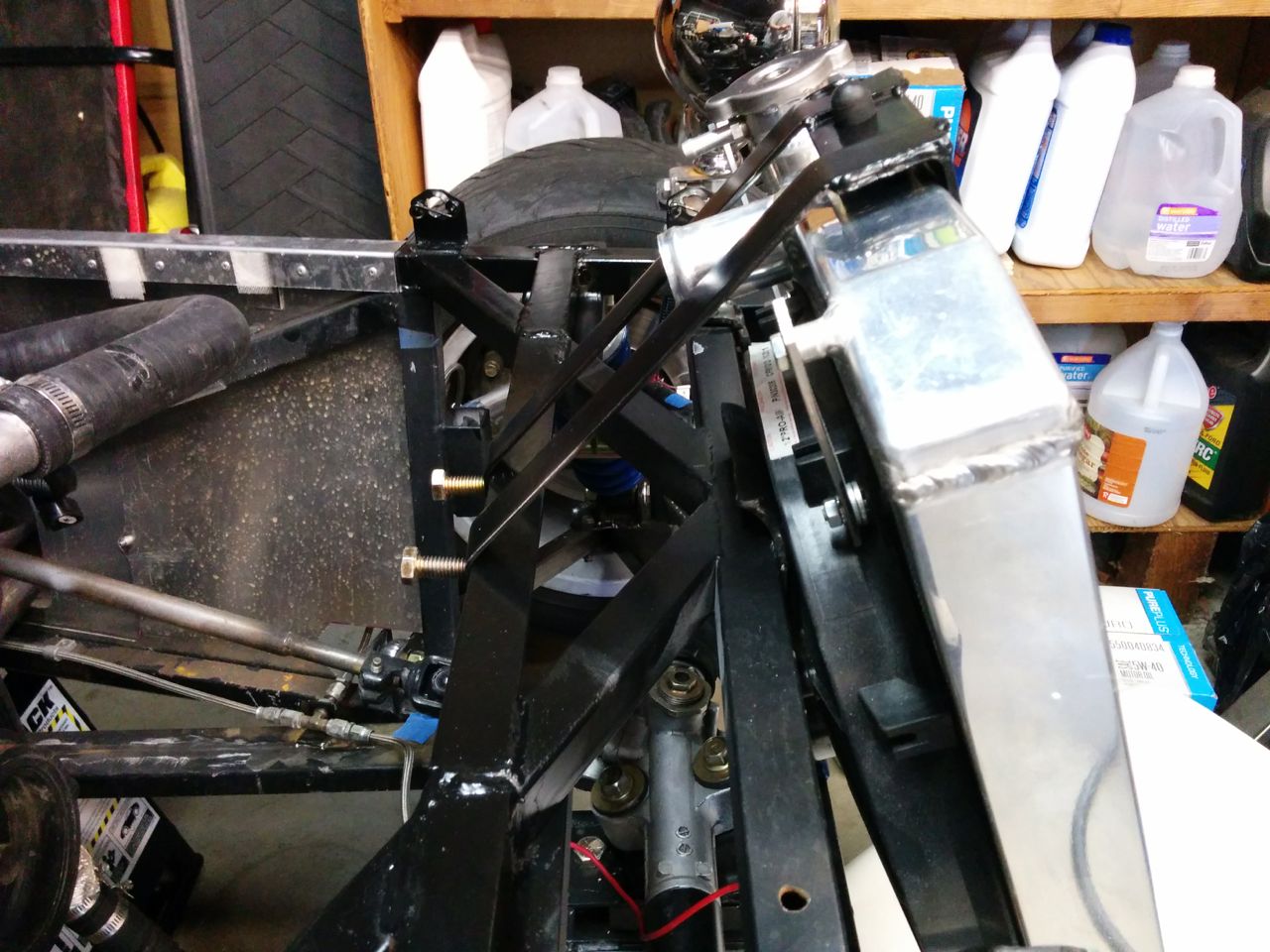 That radiator and no nose gives it a kind of T-bucket hotrod kinda look to it. Good progress! Even if it isn't Miata related ;)