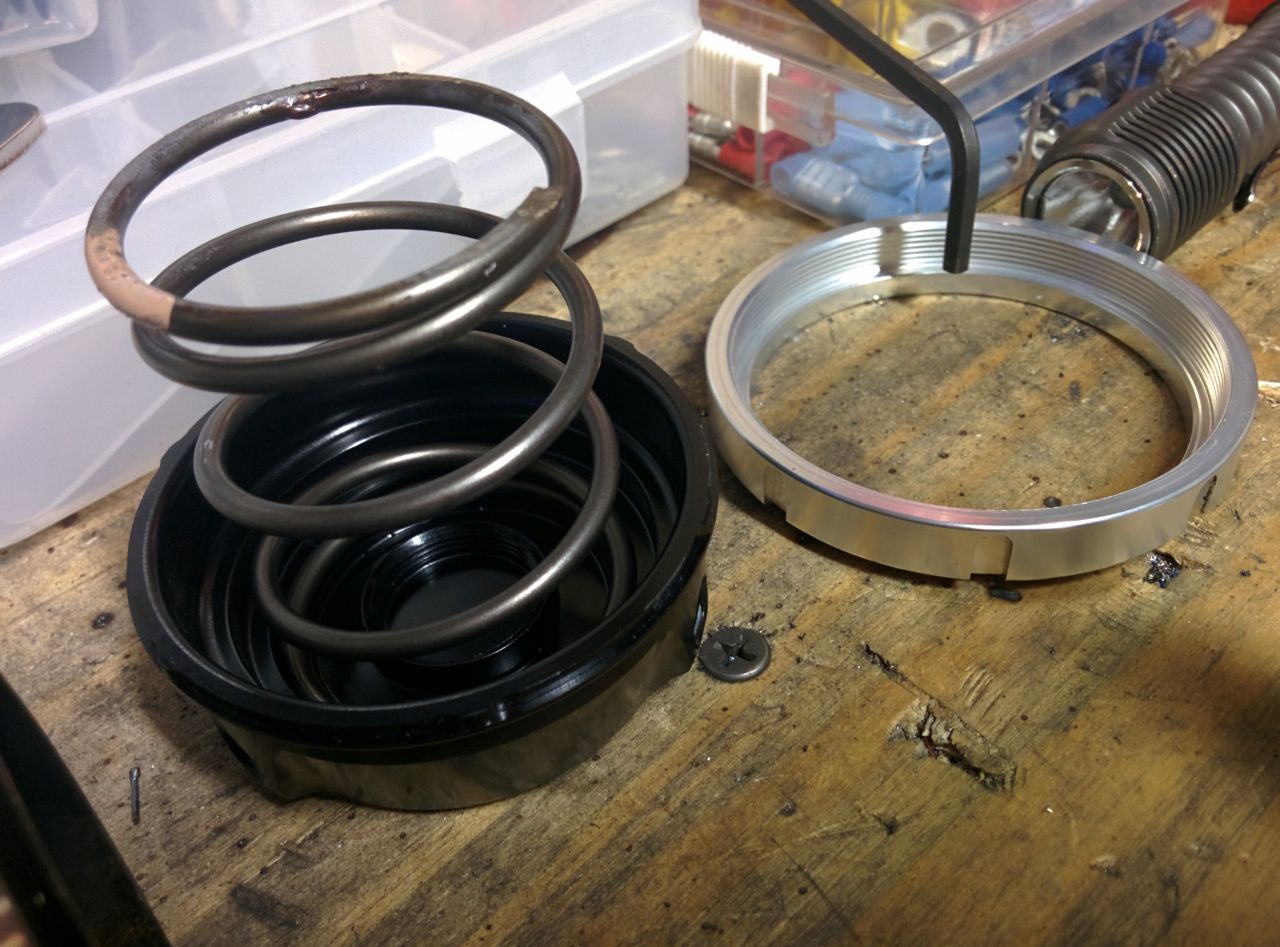 On to the Miata. My goal is to run TPS-based boost control, ranging from ~150 to 220 kpa between about ~ 50 to 100% throttle. Since my current wastegate setup makes 180 kpa, I needed to do something about that. Also, I plan to dyno it in the near future and need stable boost control at varying levels for that. So, since I have an EWG, you're supposed to be able to adjust the spring pressure in it. First step is to take it off the car and put it in a vise (man the v-bands make this so much easier). The vise is a spring compressor, apparently there's quite a bit of pressure there. http://www.codrus.com/miata/fm2r/ewg01.jpg (Note, if you're doing this, make sure the vise opens wide enough to get it all the way apart. Mine did, but only afer I blew through the washer & cotter pin that were supposed to stop it from going wider. Oops.) If you take the EWG off, you can see the turbine wheel through the hole! Whee! :) http://www.codrus.com/miata/fm2r/ewg02.jpg Then admire the springs inside it. Mine has two, which are apparently both nominally 7 psi and should thus deliver 14 psi of boost. I get 12. Whatever. TurboSmart identifies their springs with colored paint codes instead of numbers, for some stupid reason. One of mine had beige paint on it, instead of the red or blue or whatever it was supposed to be. Fortunately they also publish diameters and free lengths, so this didn't matter. http://www.codrus.com/miata/fm2r/ewg04.jpg The TS instructions say it's OK to run one spring, so I removed the small one and just used the large one. http://www.codrus.com/miata/fm2r/ewg03.jpg This turns out to deliver 6 psi of boost (which makes sense, if the two springs are the same and both deliver 6, that makes 12 which is what I saw before). 140 kpa, that's great. So we took the car out and tuned it at various boost levels, setting up the TPS table and initial duty cycle table. Works great. Man, this 2863 with EWG is so much easier to control than the 2560 ever was. A couple hours of driving around adjusting the PID values, setting up the initial duty table and the TPS targets and it's working really nicely. Last summer when I first put the MS3 in the case, I tried to port over the timing numbers from the Hydra. Unfortunately the Hydra (2.5 at least) doesn't appear to have spark latency compensation in it, so the timing numbers from it are massively advanced compared to what the MS3 uses. It was so bad that when I ran that map on the dyno last May (with the 2560), some cells were 10 degrees past MBT. Have I mentioned I love using 50% race gas? It didn't ping, even with those stupid timing numbers in it. Anyway, that dyno session *also* turned out to be totally screwed up becasue the cat had failed, and the resulting timing map was a mess. So I reverted back to the timing map that was in the MS3 when I got it from Reverant. Very conservative numbers compared to what I had been using, which the EGT gauge made obvious, but I'll fix them on the dyno. One of the annoying things about tuning a turbo on the dyno is that when you adjust the timing, a poor boost control algorithm with sometimes result in a different MAP value. This makes it difficult to find MBT because you can't tell if you gained power because of the timing, just because you gained a few kpa of boost. So we did a comparison run, the same on-ramp with the base map and then again with the timing retarded 3 degrees across the board. The MS3 EBC doesn't seem to care, the MAP level barely changed, so that's good. Base map: http://www.codrus.com/miata/fm2r/Mar...igh-timing.png Retarded 3 degrees: http://www.codrus.com/miata/fm2r/Mar...low-timing.png Hopefully dynoing it either next weekend or the week after. --Ian |