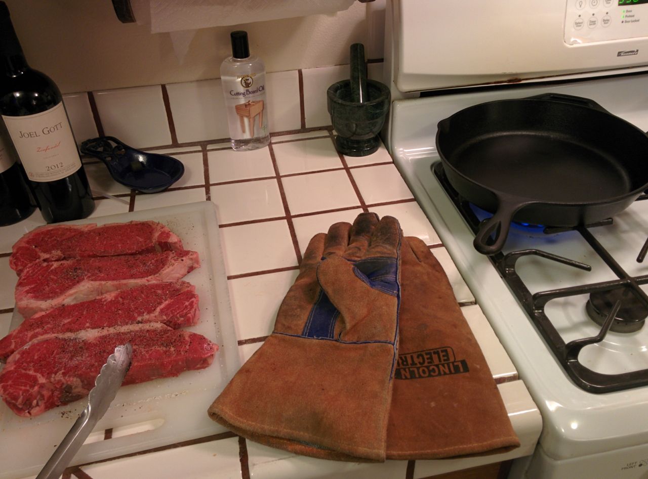 Welding gloves are useful in the kitchen too! :)