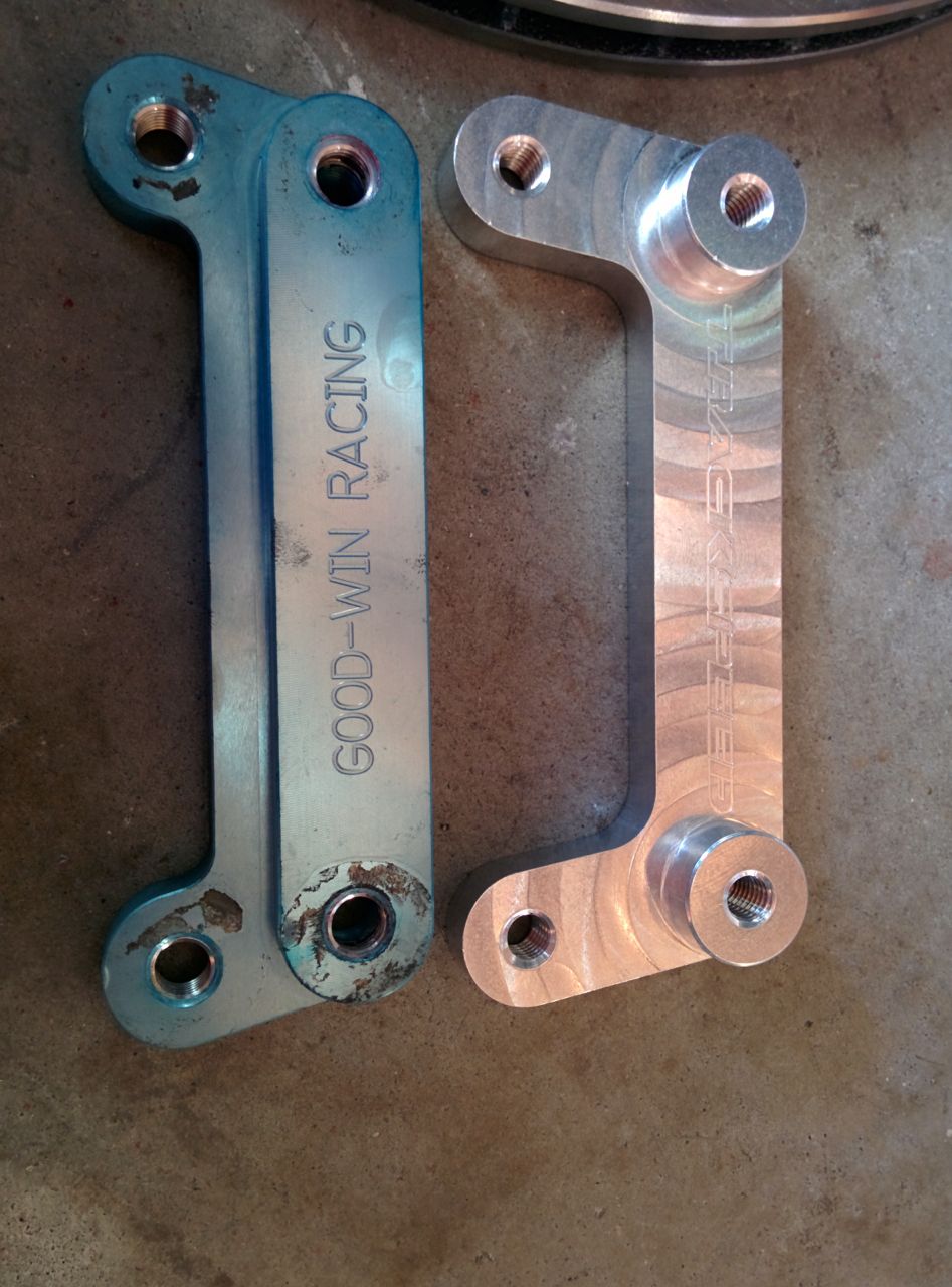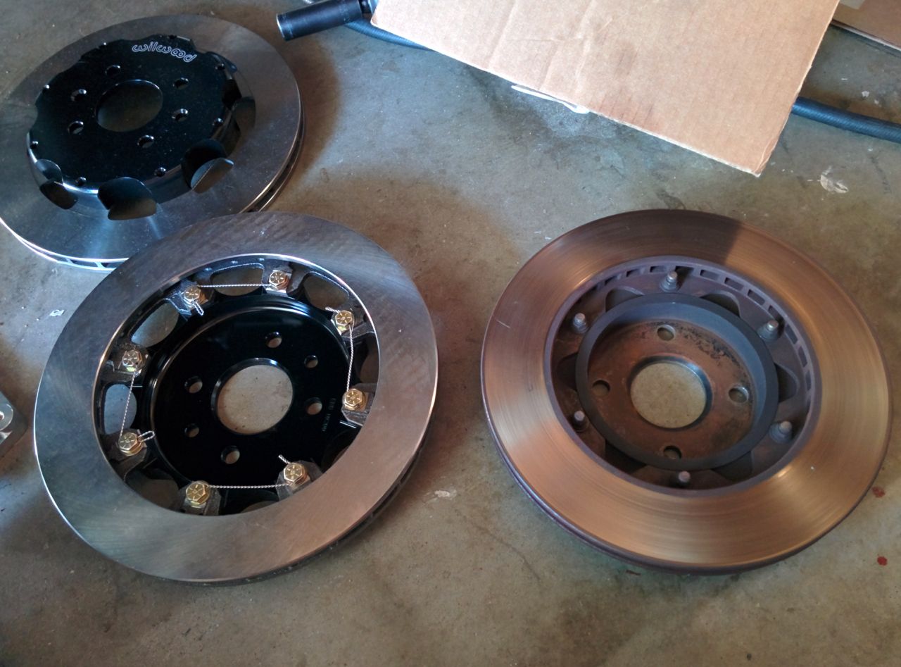http://www.codrus.com/miata/fm2r/1175-01.jpg TSE brackets vs Goodwin brackets: http://www.codrus.com/miata/fm2r/1175-03.jpg Rotors: http://www.codrus.com/miata/fm2r/1175-04.jpg http://www.codrus.com/miata/fm2r/1175-05.jpg Installed: http://www.codrus.com/miata/fm2r/1175-12.jpg http://www.codrus.com/miata/fm2r/1175-14.jpg I also pulled the cat off and looked at it -- it's fine, not the cause of the poor spool. --Ian |