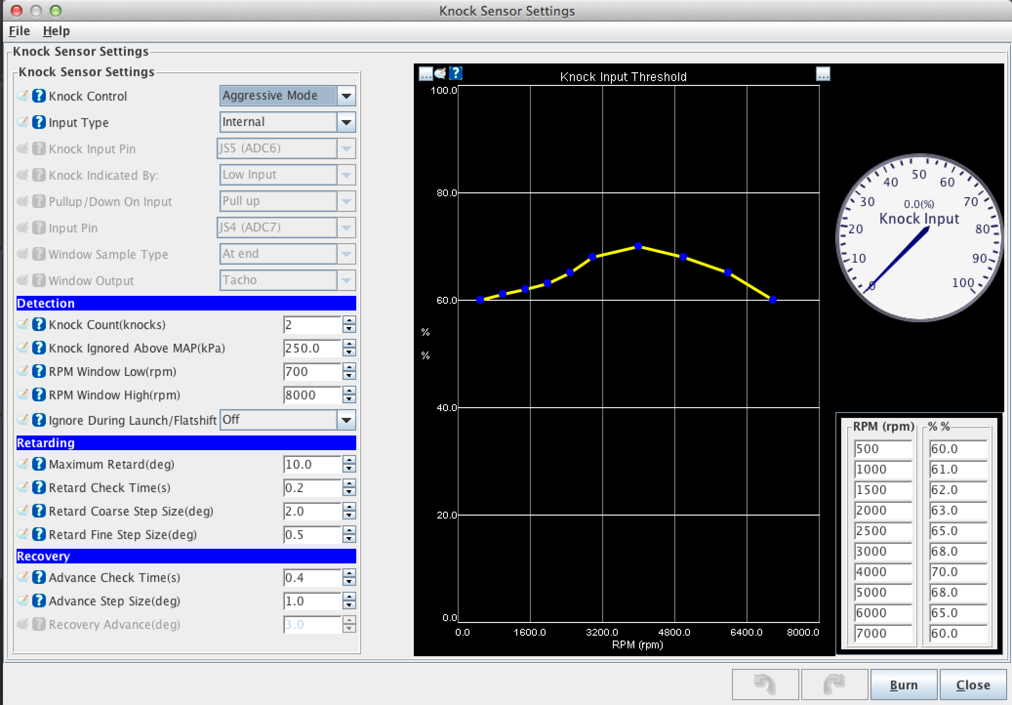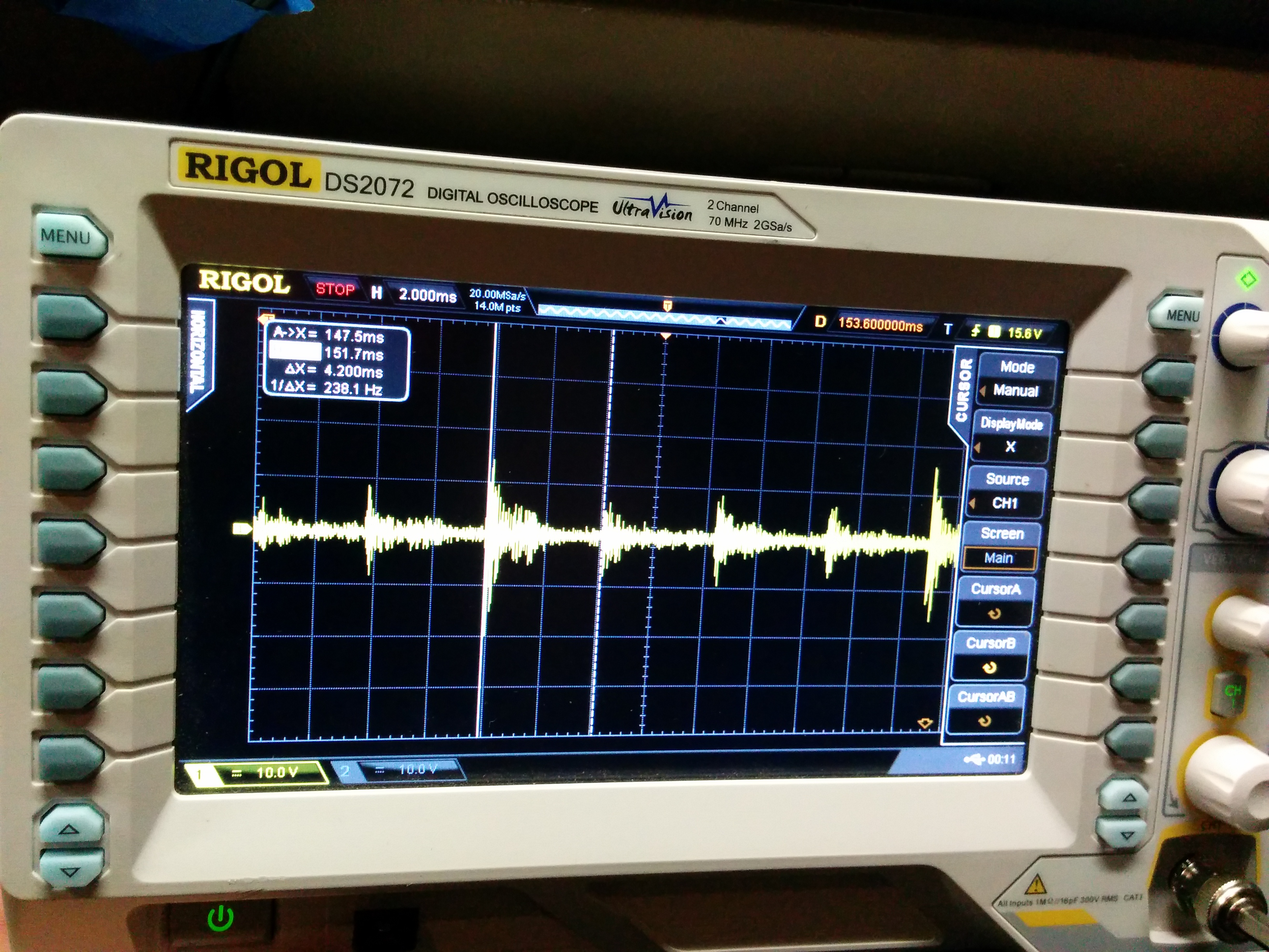 https://www.miataturbo.net/attachmen...1&d=1427097272 We ran it around some more on Tuesday and managed to catch a few real knocks. They look distinctly different: they're more of a "whack" than a decaying bell sound, but they're right on 6.5 kHz: https://www.miataturbo.net/attachmen...1&d=1427099058 https://www.miataturbo.net/attachmen...1&d=1427097272 That's raw sensor data. I'm not sure what the MS3's input filtering does to it. It's configured for 6.94kHz but I don't know if it's a simple bandpass (and if so, what Q value), or if they have something smarter (I remember there being some kind of DSP on the board... I'll have to look and see what it was). |