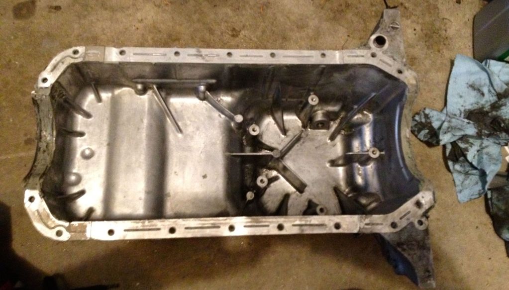 Cleaned the oil pan a bit, was nasty as hell, still need some razor blades or something to remove all the glue: