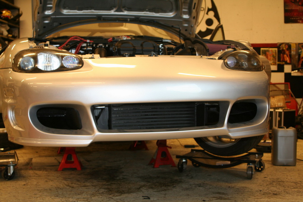 This is starting to get somewhere. PAinted everything and it is all bolted on. Fixed the problems with thr relay to tha fans (had to change an output on the SM4) and the boost controller if fine. Just need to adjust the clutch pedal bolt the seat down and take the car out for a spin.