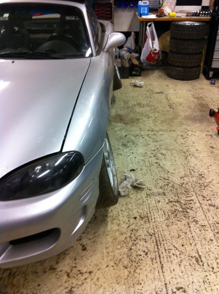 Well. The car is back in the garage. A few minor oil leaks is hopefully taken care of. The front crank oil seal from the rebuild kit to FM was a bit smaller than the original Mazda seal, and it had a small fabrikation error. The things to do this winter is to clean up alle the wiring, finish the stereo, get some bigger brakes and a couple of other things.