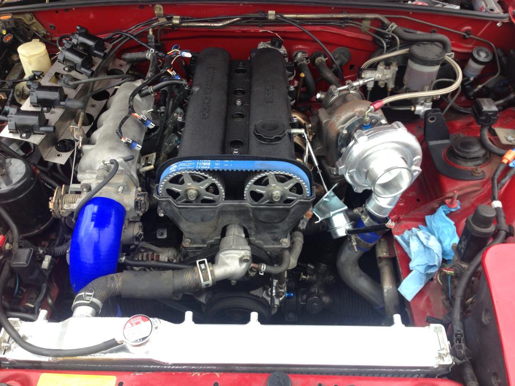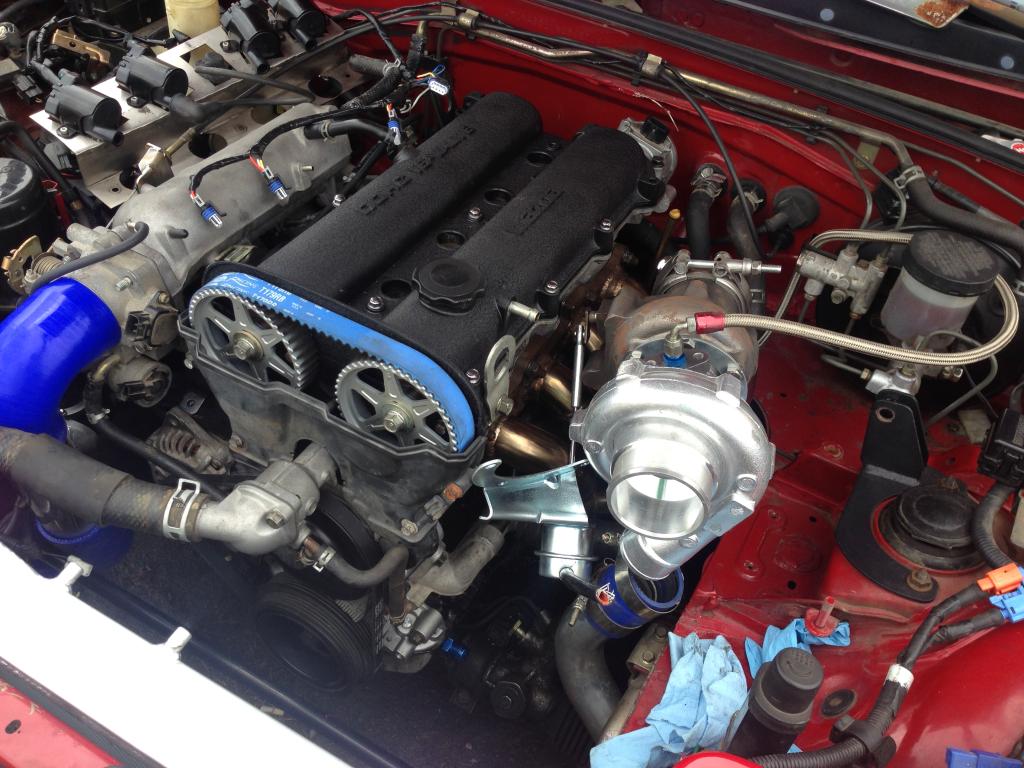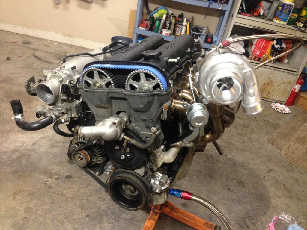 Made good progress this weekend even though I didn't get to fire her up like I was hoping. Ran into a few small snags here and there which I kind of expected. Main one was the original intercooler piping on the throttle body side not working since the the 1.8 is longer in the front. I have got that taken care of now and also switched to a throttle body from a 02 miata to get rid of the IAC hose that plumbs into the intake piping and clears up a bunch of room. But of course the connectors were different so I had to source the connectors from a junkyard but got lucky and found both the TPS and IAC connectors at the first place I went. I hope to get everything buttoned up and get the engine started up sometime later this week.