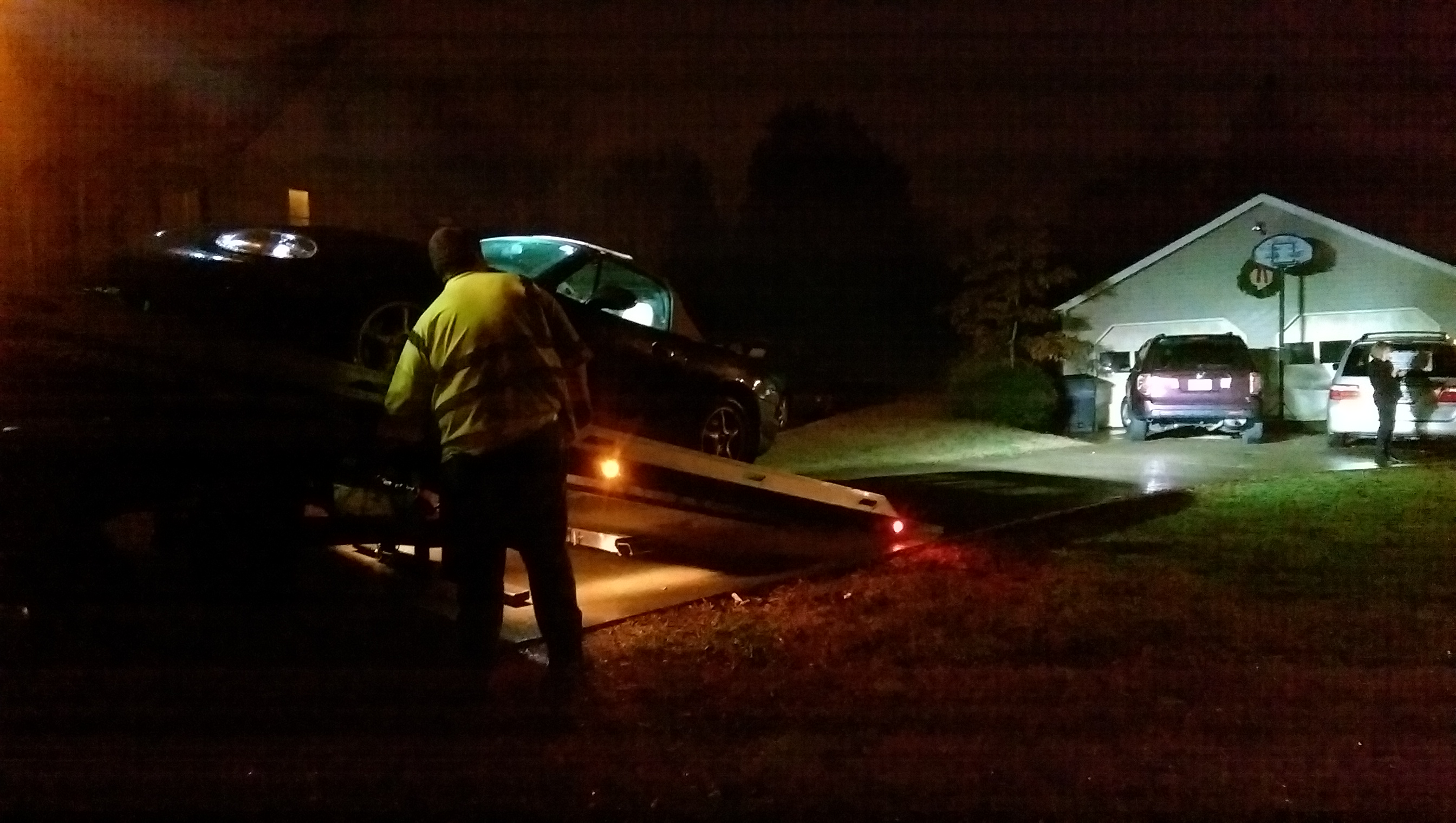 Last year I had a relay die after a track day. Car was towed home. The truck was out in the street lined up with my driveway, slowly backing in. Driver gets out to check clearance with me on the rock wall etc, and to see if we're far enough up that when he tilts the bed, the car will be on the level part.