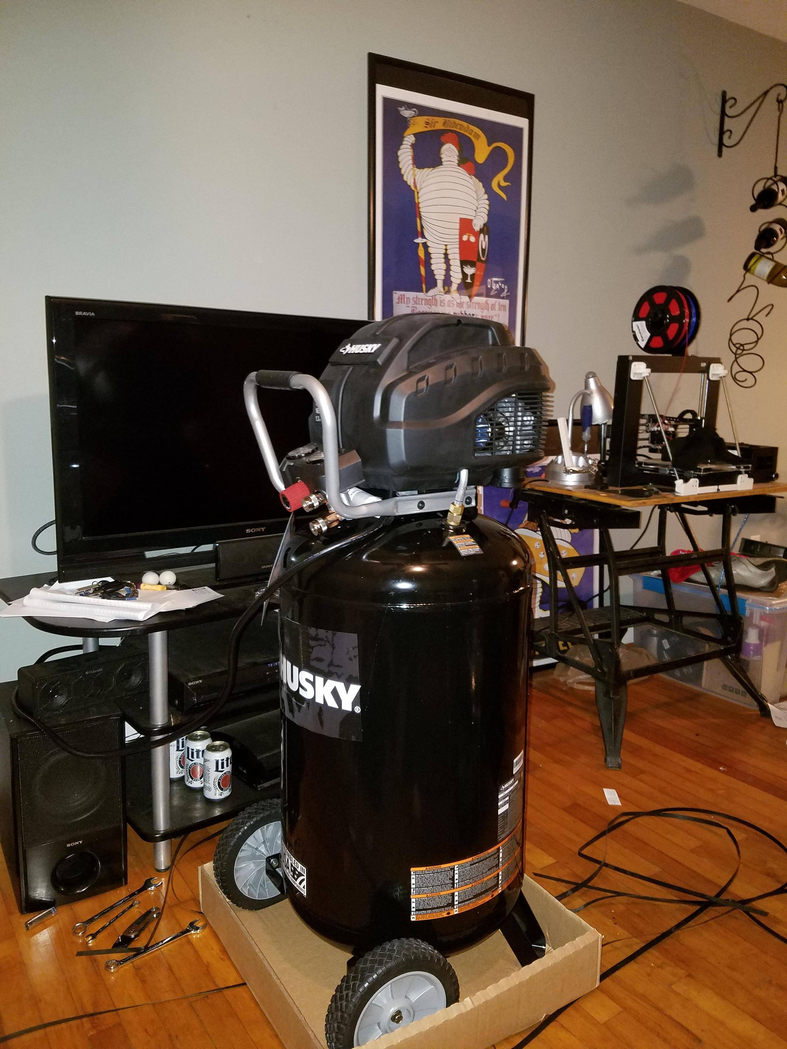 Bought a 33gal, 165psi, 5.1cfm oil-less compressor today for $75. Discounted from $400. Not too shabby.