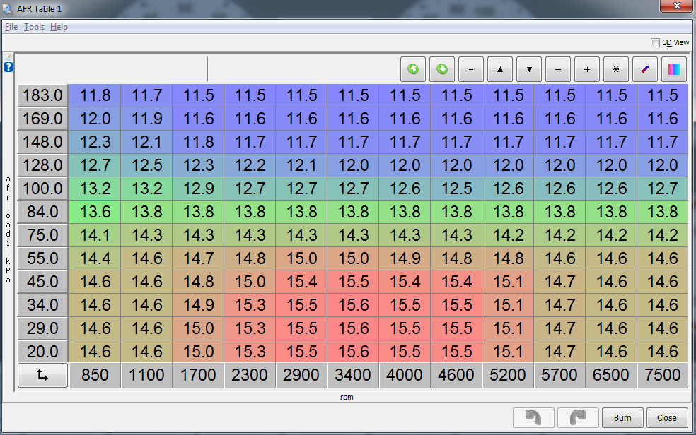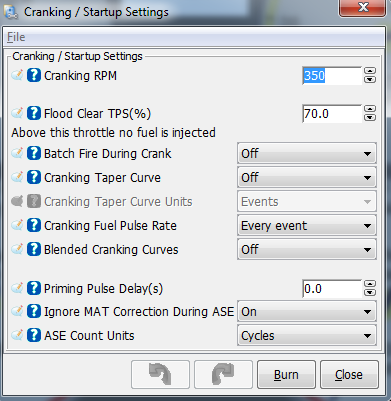 Did my first tuning today with a friend of mine giving me a hand. We only touched AFR and VE, and dialed the spark table back a little bit because it seemed to have a lot of timing in a few places. Anyone want to glance at it and tell me whether I'm doing anything dangerous? Listing my cranking and priming tables for advice as well. First starting attempt in the morning does NOT like to start. Though I park it at work at 7:00am and it fires right up at 5:30pm.
