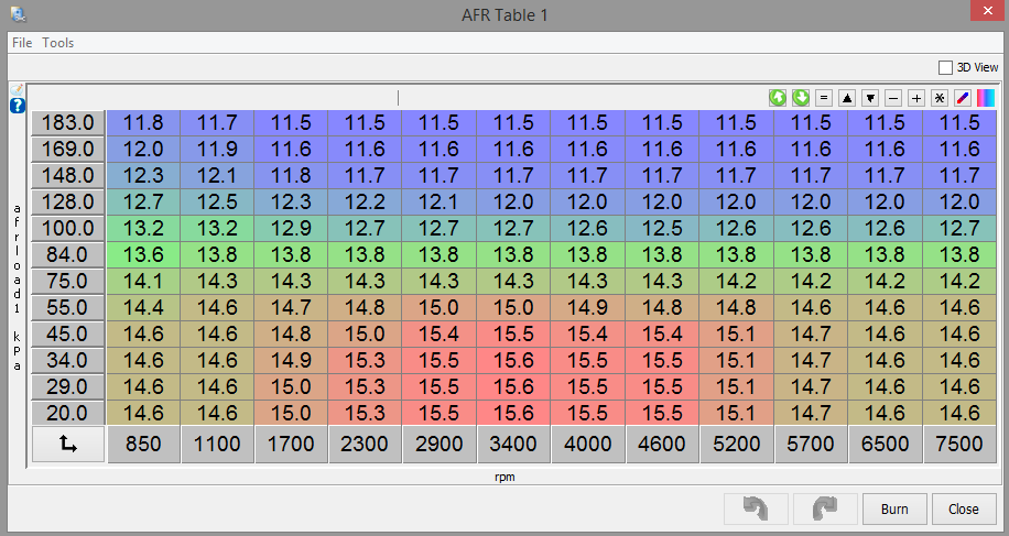 Re: some past discussions about quick throttle punch and short lean. If the car does not "feel" bad, it seems the consensus to not worry about it. I have my AFR safety to not cut fuel unless the warning lasts for 0.4 seconds. I do try to actually have the enunciator only flicker. As things are now, even though with fast throttle excursions the AFR's do not track perfectly, throttle response still feels instantaneous.