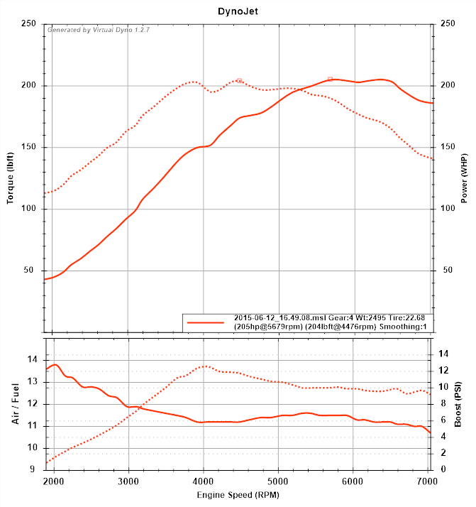 Most recent VD. (Very) slight downhill, so I'm saying maybe 10hp less than that at most. Also assuming the dip was a bump in the road. Need to get on fixing this wastegate issue.