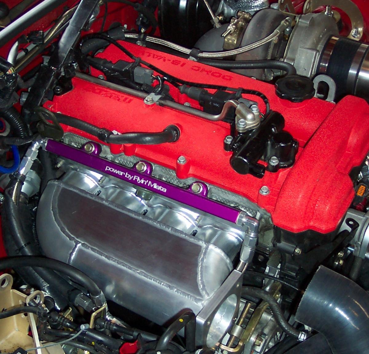 It's a Flipside Customs manifold that has a Q45 throttle body flange on it. The plenum is bigger than the other versions because that tb is huge. If anyone is interested in a manifold from him he has a more conventional version that will use the Mustang tb as well. It's very similar in design, but will actually have a more finished look and seems like it will be very nice.