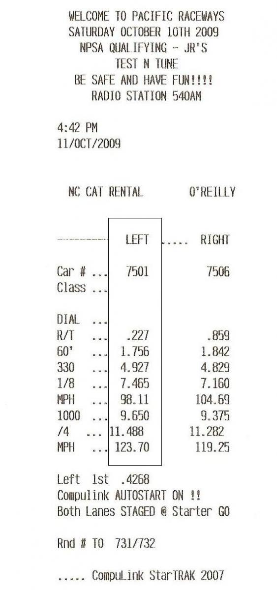You're into the safety requirements for 11.49 second car, have you met all of them?