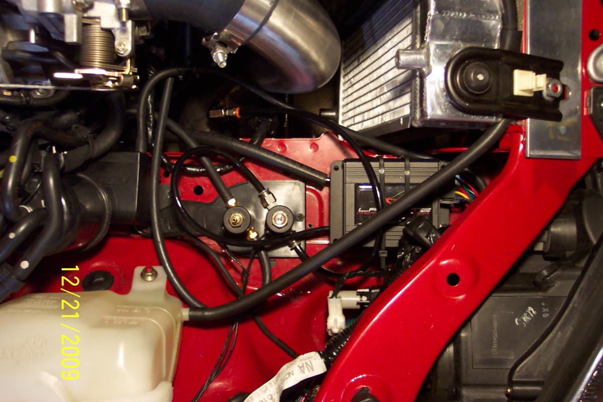 Nothing yet, really sucks having to dependent on others to do welding projects for me. I need to have a bracket for the throttle cable welded on and the vacuum ports redone. Then I can drive it down to the shop to have the cold side intercooler piping redone.