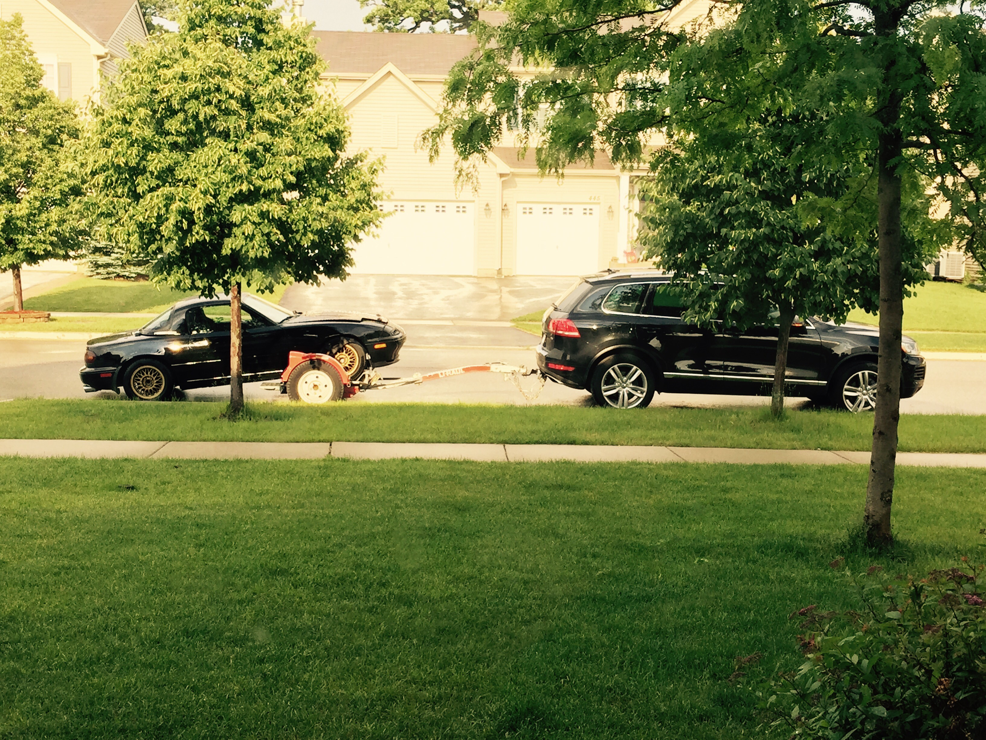 Here is my car with Aaron's in his garage.