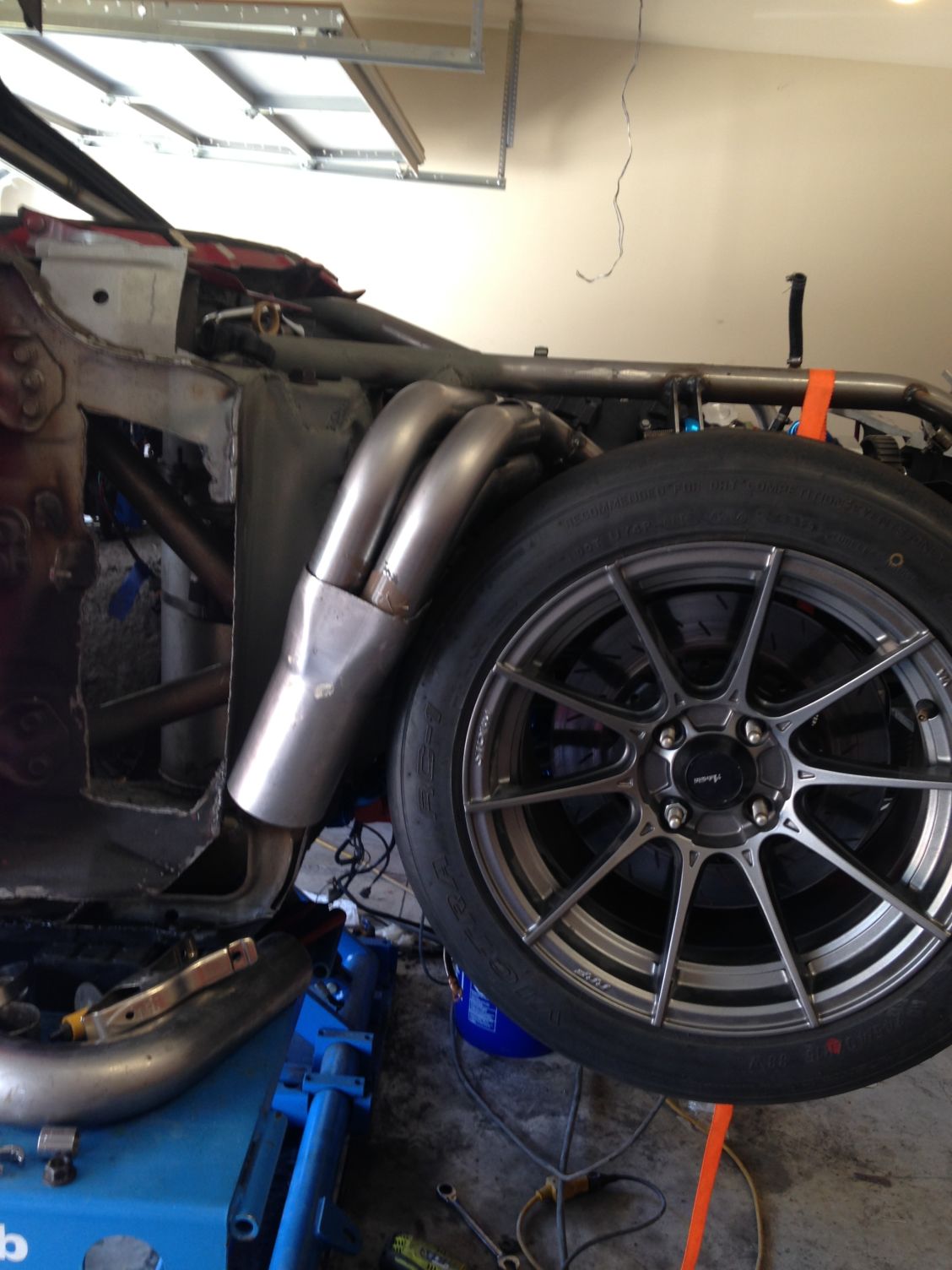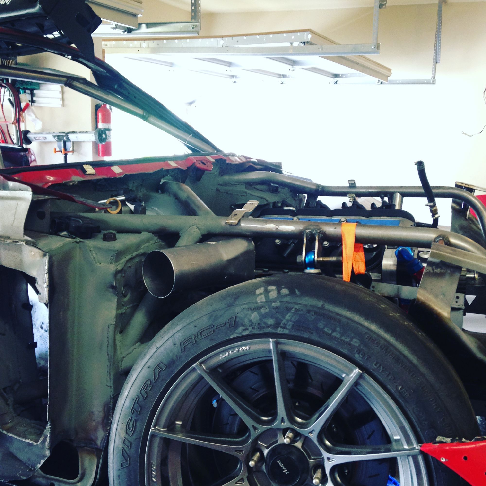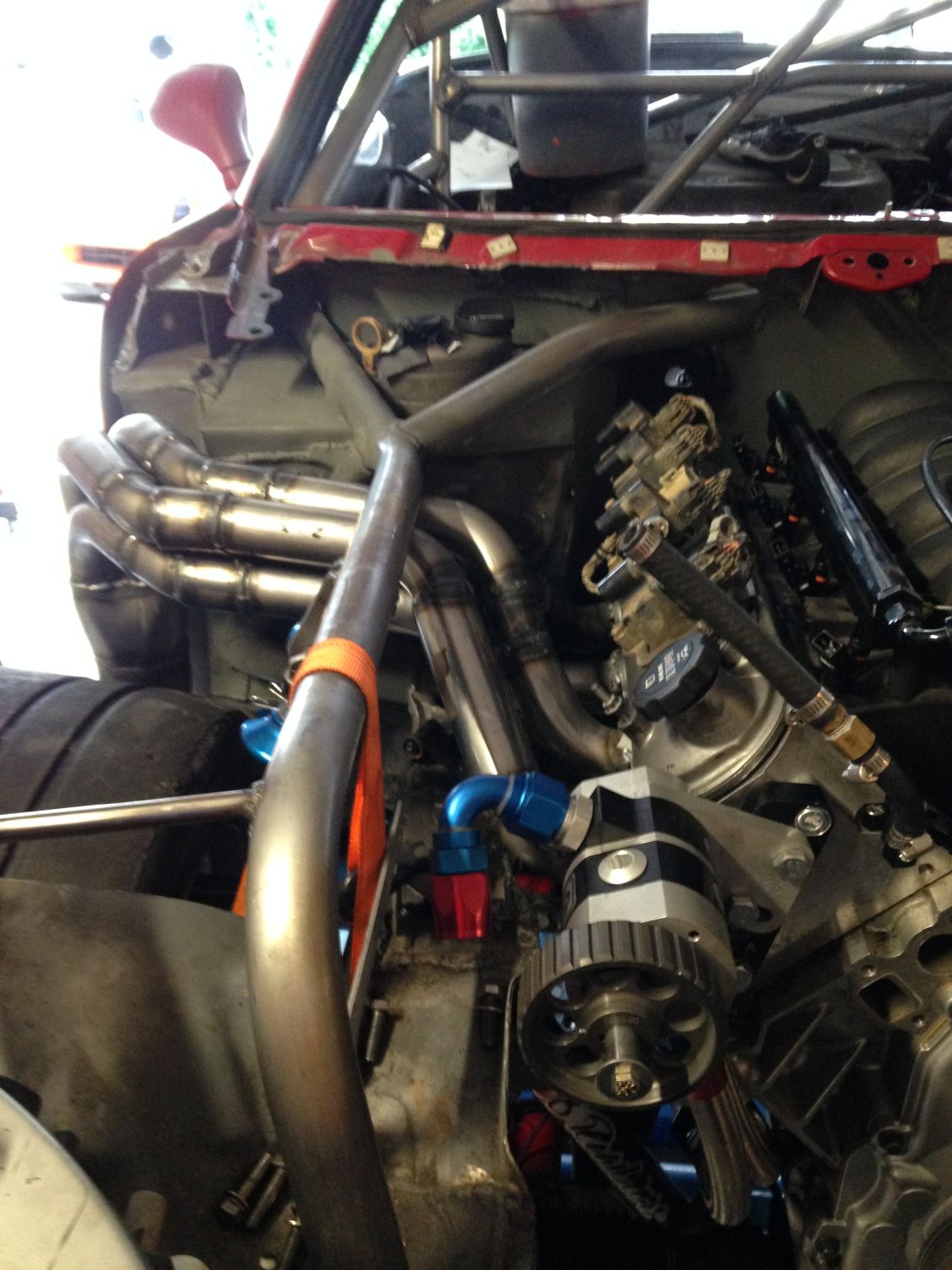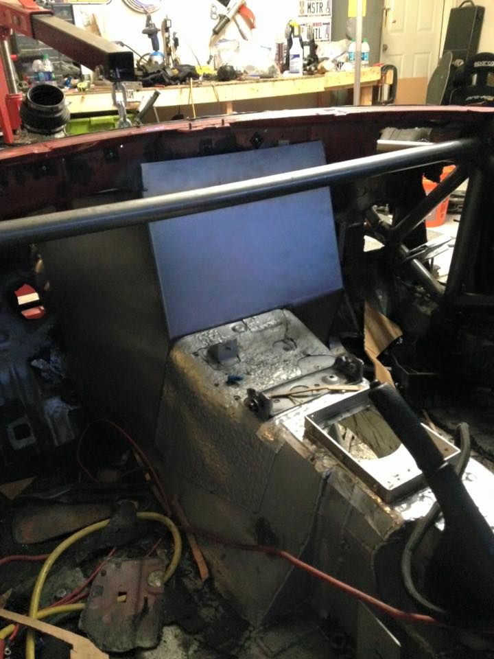 drum roll, the dry sump tank has a home. i'm planning on building the firewall out so i can't access the tank from the inside. this should give me time to get out if there is a fire.