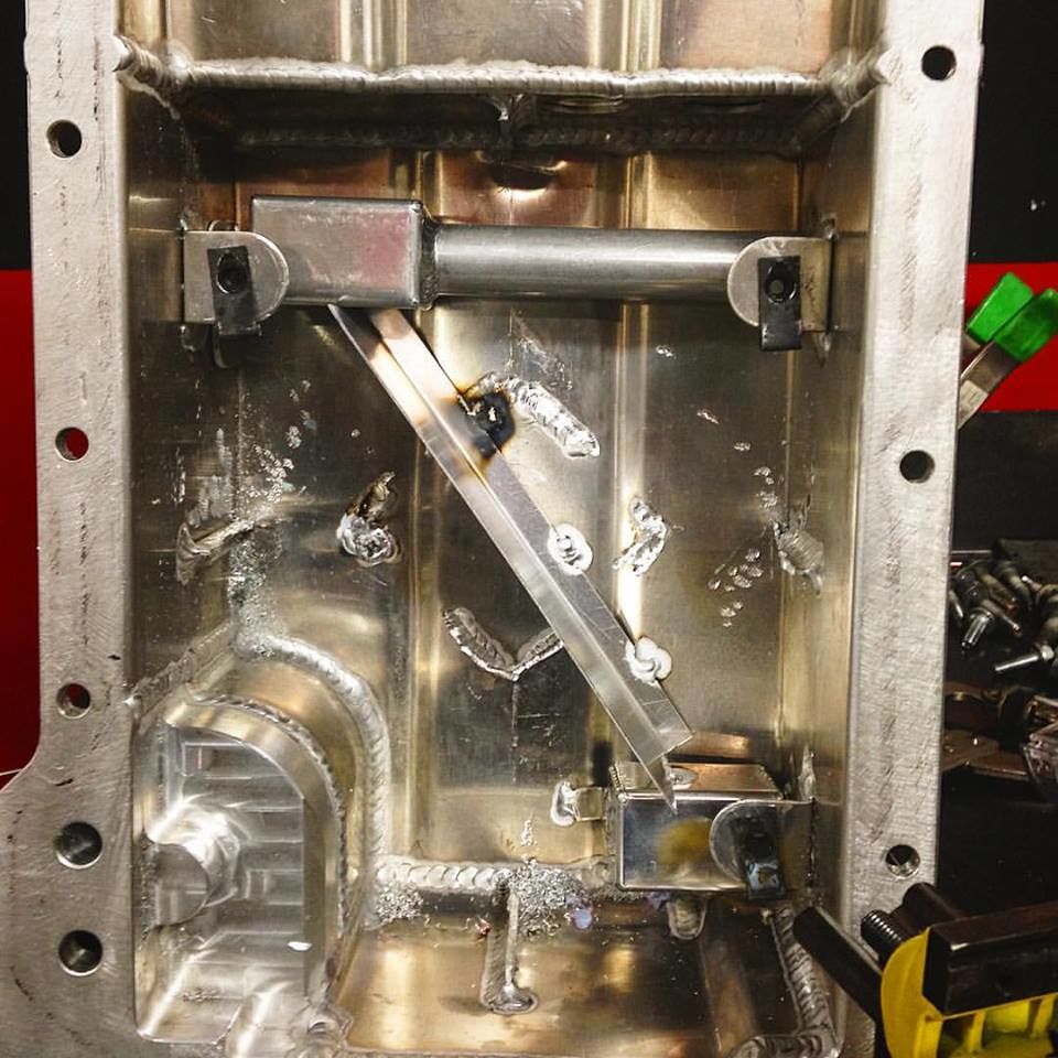 i've Been getting down on myself as the dry sup pan has been a nightmare. i don't have the ability to weld aluminum, so I've been relying on others and favors. well after taking too two different shops Vengeance Road Racing pulled threw last night.