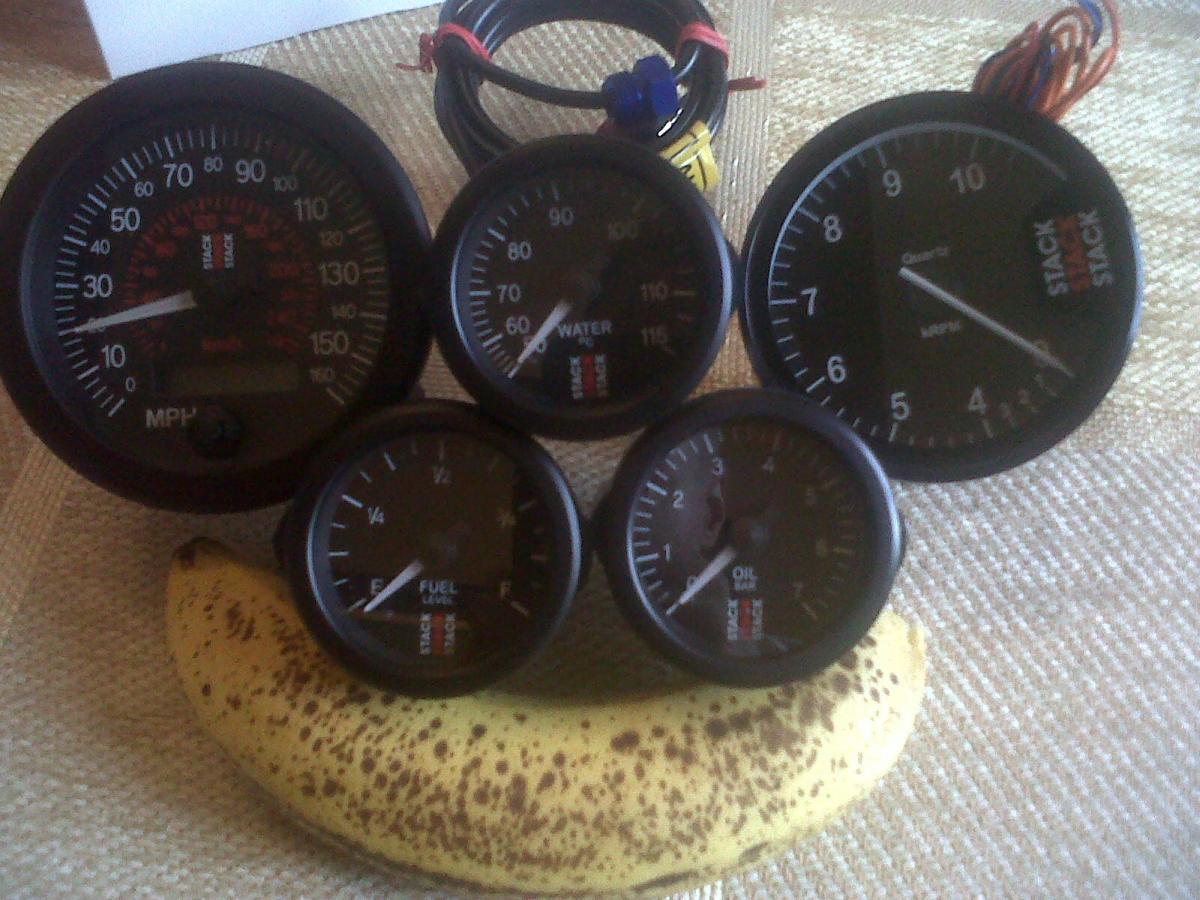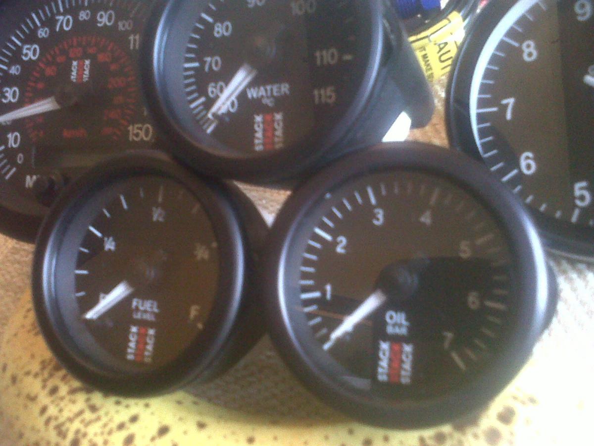 ^ Stack gauges. Oil pressure and water temperature are both mechanical units.