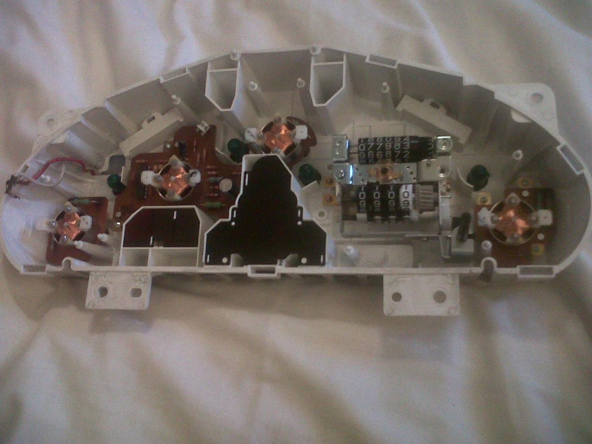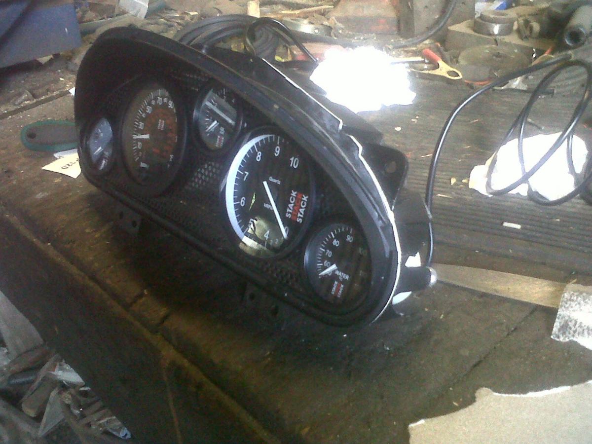 I've spent a couple of days after work modifying the existing dash binnacle for the new gauges. It should be done tomorrow... so finished pics soon. The first three photos below are of the standard binnacle in various states of undress, because I thought you lot might be interested to see what's in there.