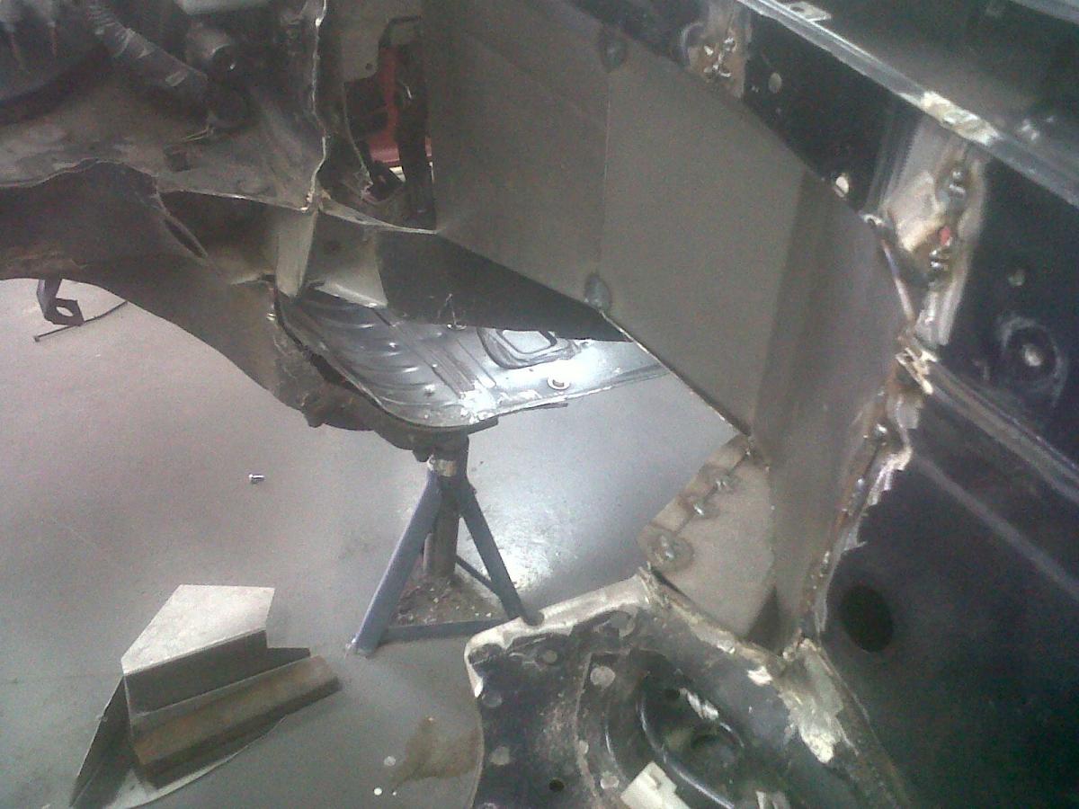 The trans tunnel will be either cut or beaten out slightly (into the cabin) to make room for the exhaust and a 115mm diameter silencer/muffler.