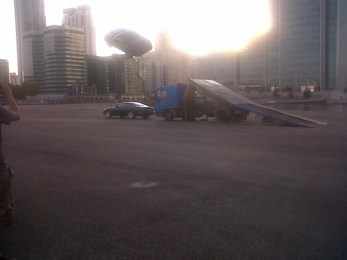 Also, as much as I realise I should probably only post photos related to the build and not photos of ladybugs having sex, me in a dress, other cars, etc, I'm going to post this one photo below anyway. I was a runner today for a TV engineering crew, who's work of the day climaxed in a remote control Jag XK8 being launched off quite a large ramp. So here's a photo of the Jag mid-flight. I think it's crying out for a "VTEC just kicked in, y0!" tagline. It also makes for a photo which some people out there might find cool: