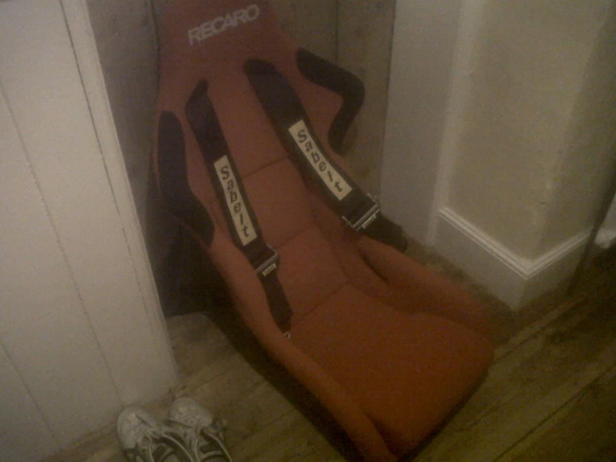 Recaro Profi SPGs and Sabelt Ultralight 6-point. With, er, only two points hanging through the seat.