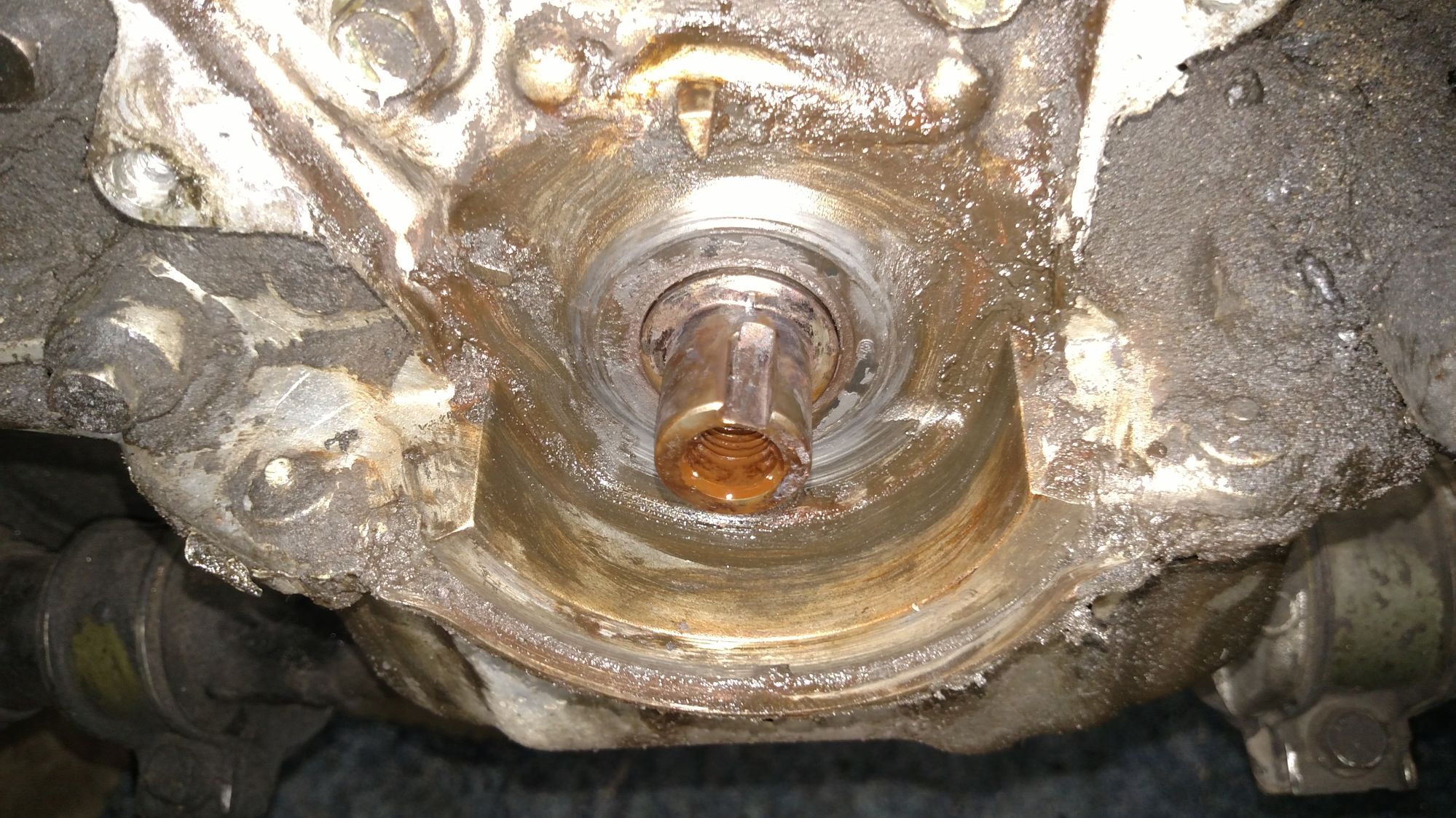 After all of the reading I had done, I already knew what the problem was. I had seen it talked about in most of the threads I had poured through but refused to believe that it could happen to my car… I tore off the timing covers again, removed the timing belt and pulley and was greeted by this.