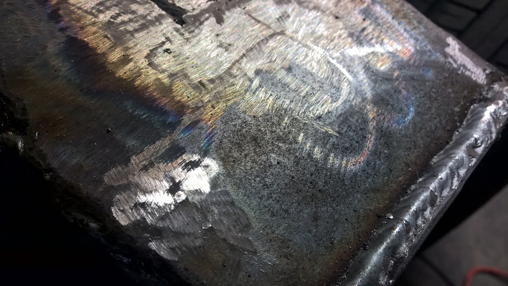 So I fired up the welder, and lined up my setting for 3/16" (the plate is 1/8") - lots of heat, lots of filler - it helped a lot - I then made the top surface smooth (again):