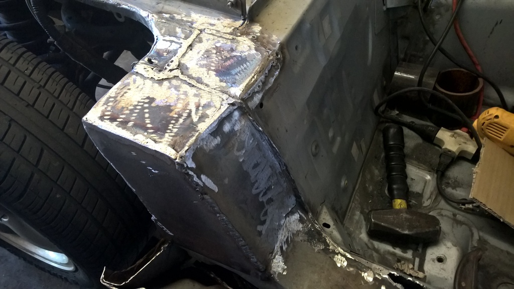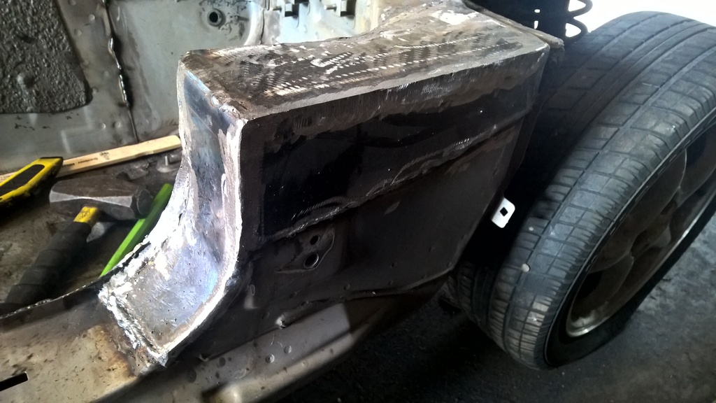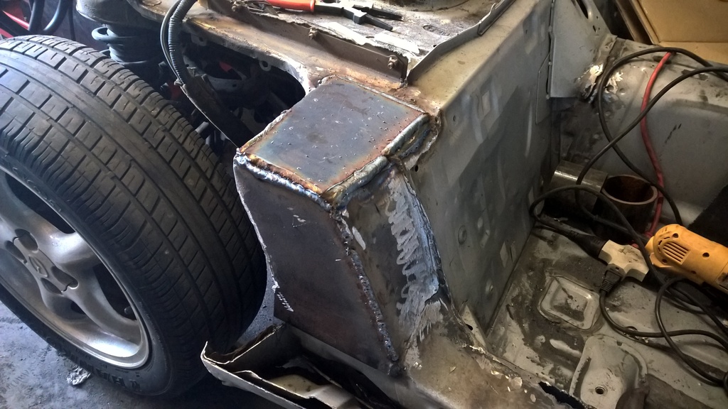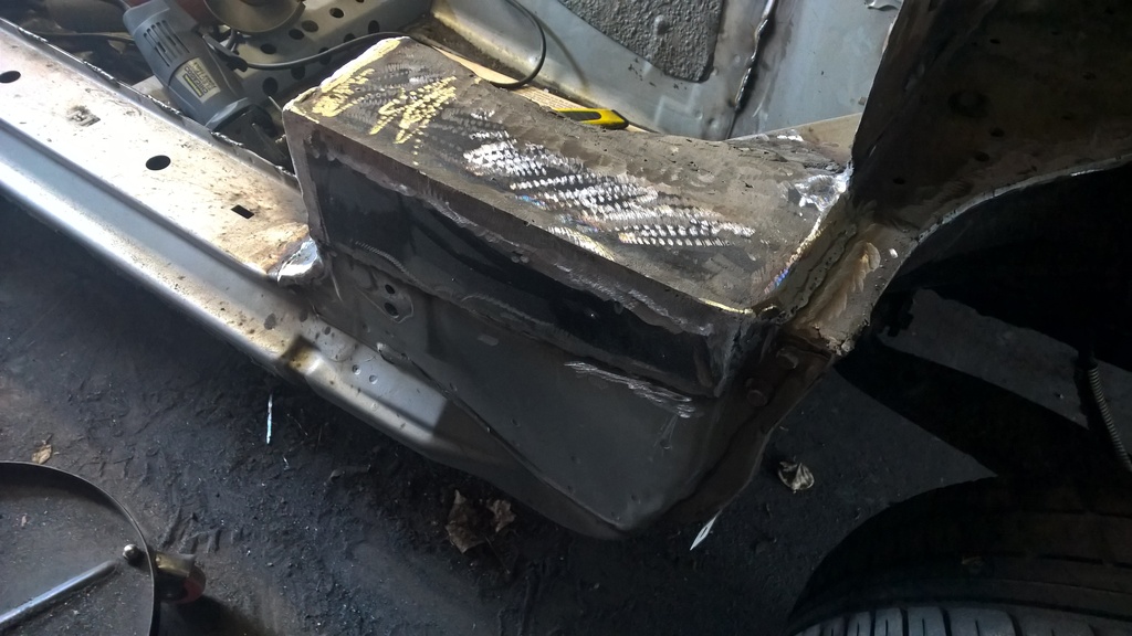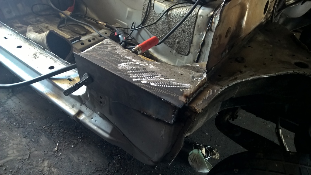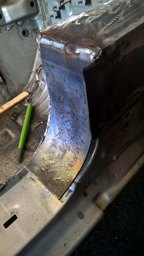 At this point, I turned my attention to the rear again - time for the "actual" base plate - with the reinforcing pieces I had inlaid (previous posts) I was able to use full-heat when welding this plate - without ricking burn-through.