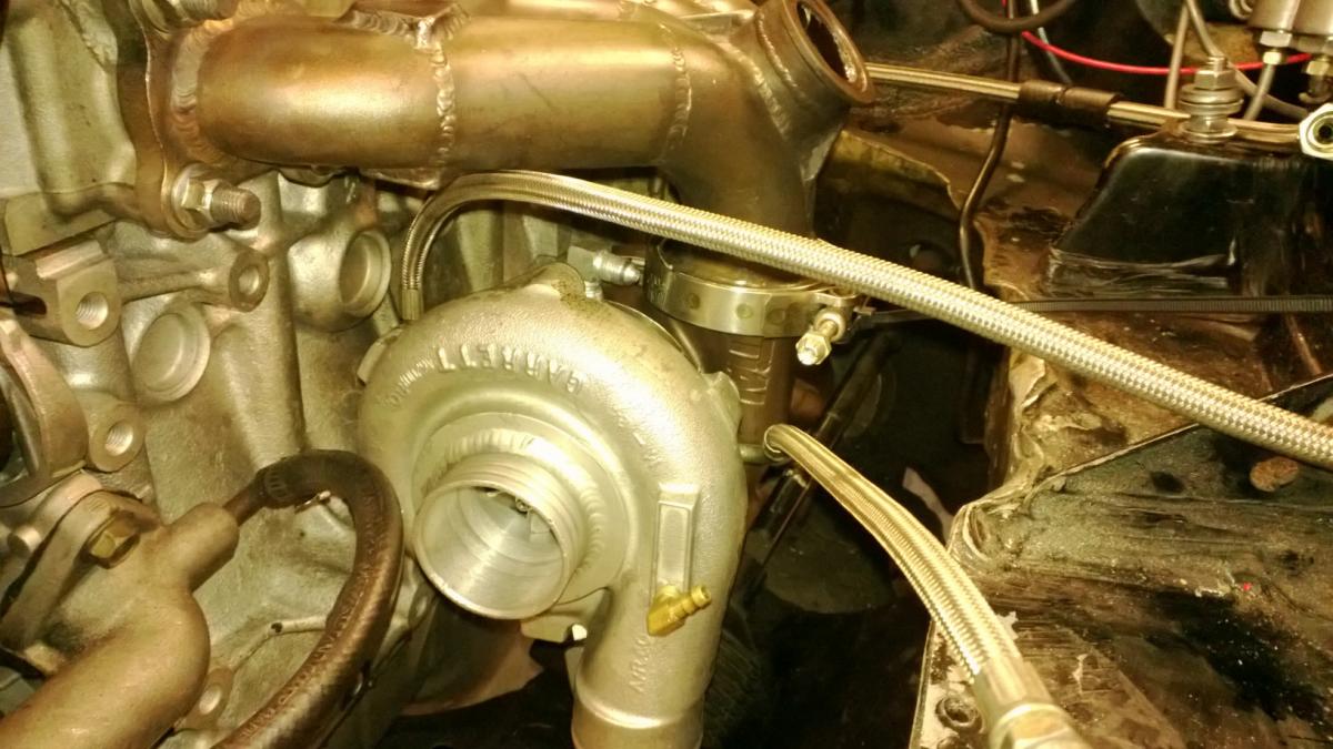 Fabbed a new oil return line and finalized the oil inlet and water in/outlet. Clocked the compressor side. Awaiting some parts so I can finalize the turbo installation.