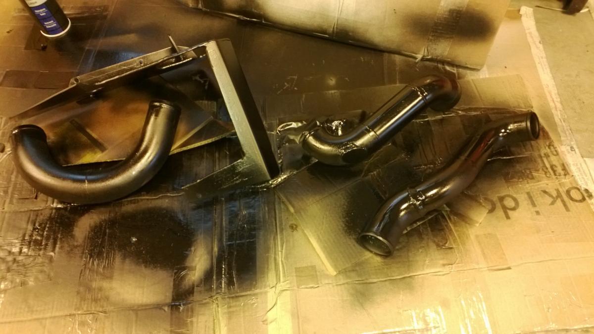 Oh, the intercooler pipes fit flawlessly. The cold side is clocked now. Spray painted the new pipes.