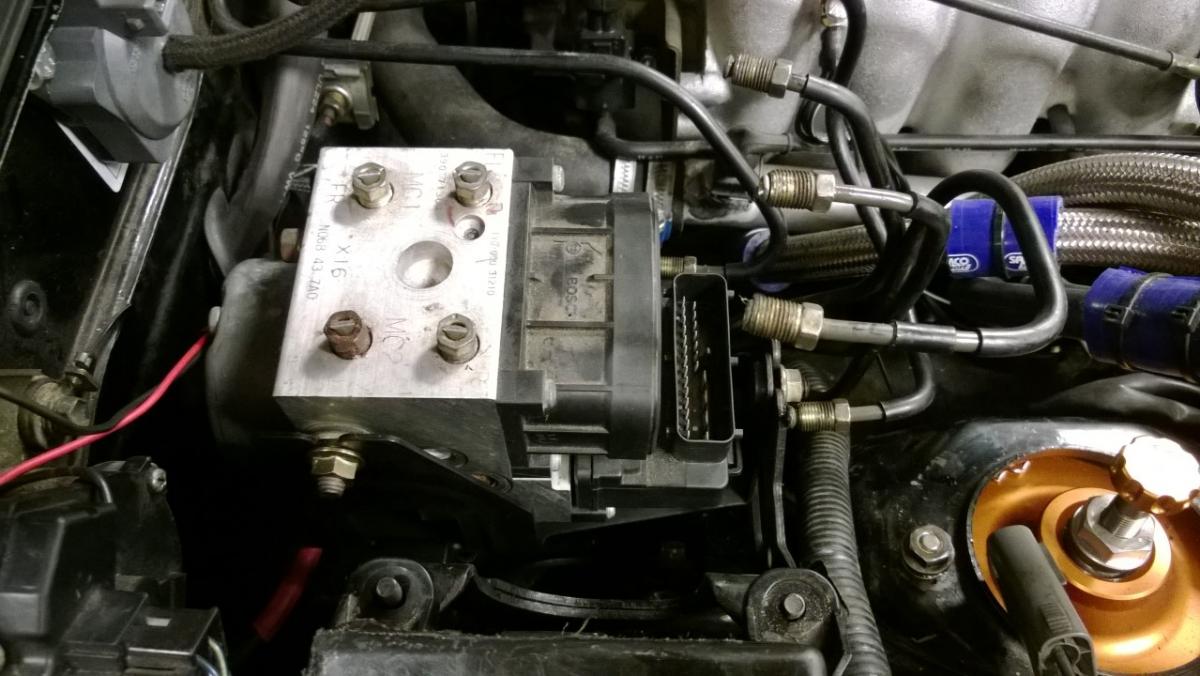 I needed to adjust the 2001+ ABS unit brackets slightly to fit in the car and still mount the fuse box and not crush existing brake lines. That is all done now.
