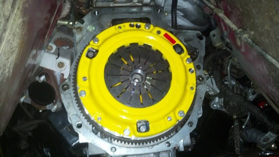 A few small updates. Pulled the trans again, curly and I did it on 80 minutes start to finish. Replaced clutch with ACT XT-SS with organic disc, awesome stiff clutch pedal. Grabs great, I like it.