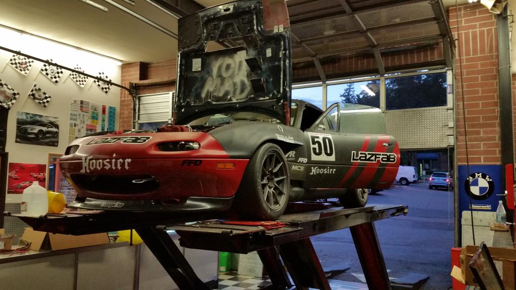 It's never going to fit in any class now that it's turbo'd. Too fast. We'd be doing full aero to be competitive in whatever class he'd fit in right now. And no one but Martin would really be able to drive it. As is it's scary even to most N/A Miata drivers. 250ft/lbs comes on fast.