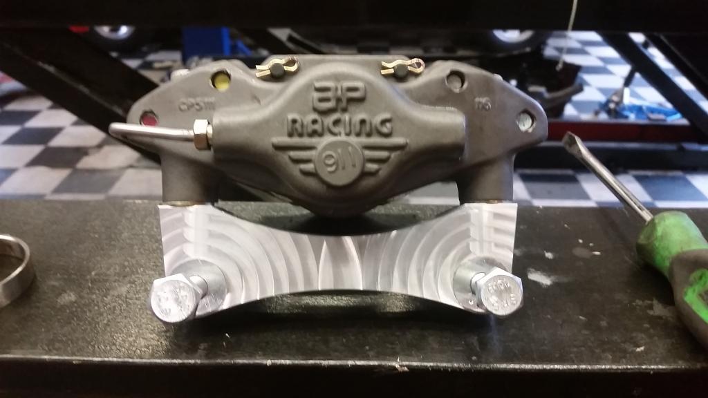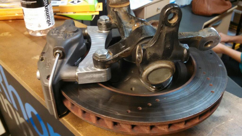 Requires a centering ring for the rotors and obviously a bracket was machined for the caliper. They are a radial mount AP racing 2 piston fixed caliper that you would normally find on a Lotus Elise/Exige. The rotors are 4x100. If track testing goes wheel I'll be putting these into limited production.