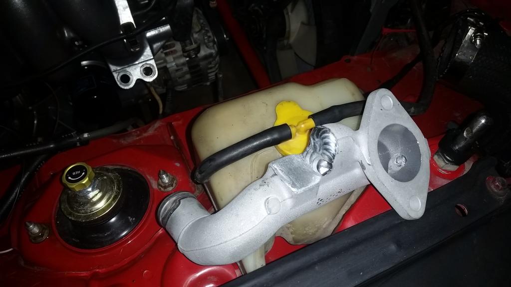 Moving onto the cooling system I got my reroute spacer and welded 1.6 thermostat cover in.