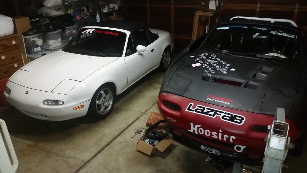 For fun I also threw on a 308mm Lotus Exige Cup car rotor that we had laying around. Much to my surprise I can actually space the caliper out to fit the rotor and almost fit inside the wheel. If the caliper was shaved down a bit or I didn't run any wheel weights the setup would just fit, which would be amazing considering the rotors are over 12 inches in diameter. Perhaps another day when I have a 400whp Miata.