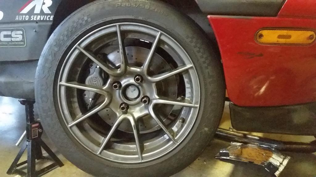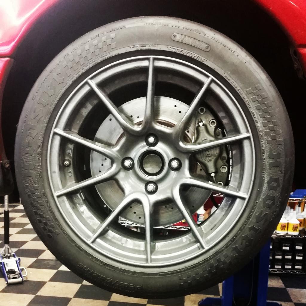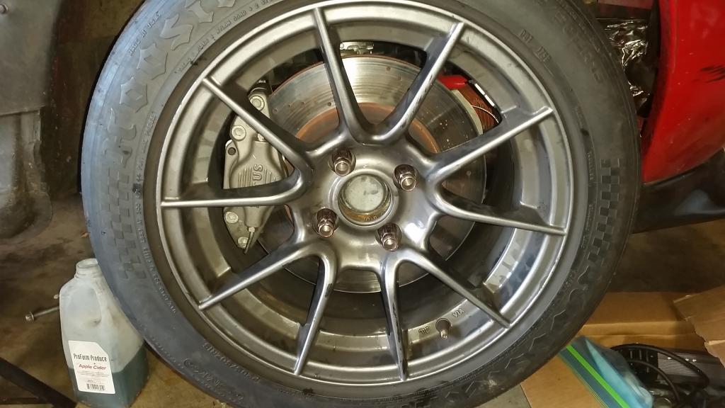 So I got the brakes are all buttoned up. Checked to see if there were any clearance issues with the new brake lines, brake ducts, or anything else. Nothing rubs, everything fits perfectly.