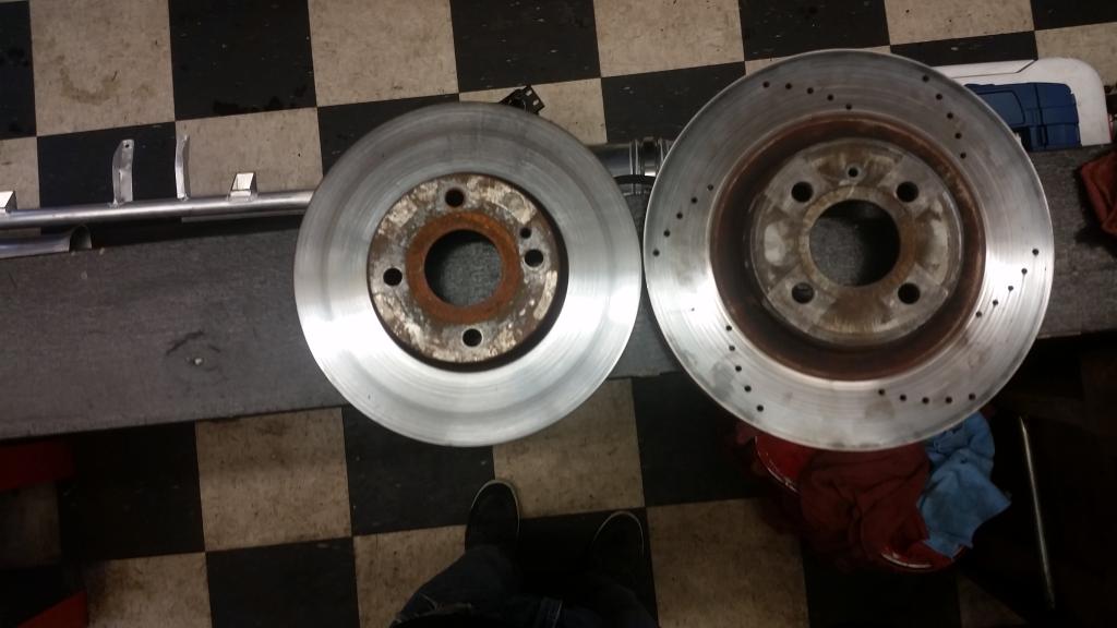 Lotus AP Racing BBK success achieved! Just waiting for the lines to be made and they'll be on permanently. 288mmx25.4mm rotors. Rotor in comparison shot is a stock 1.8 miata rotor.