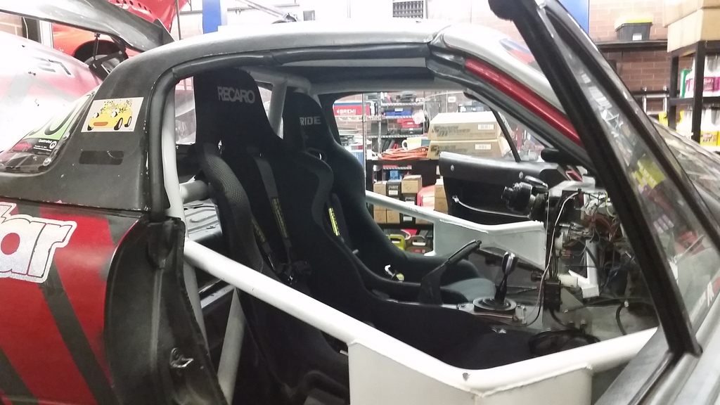 Rest of the car hasn't changed too much. Full whiteline bushing kit is installed, MCS singles installed, rough alignment is done, hardtop had ~5 layers of paint stripped, and we've been whittling away at the fab list. Floor drop and seat mounts are ~90% complete, kill switch is mostly wired (pictured above), just need to finish the door bar, paint, and go racing.