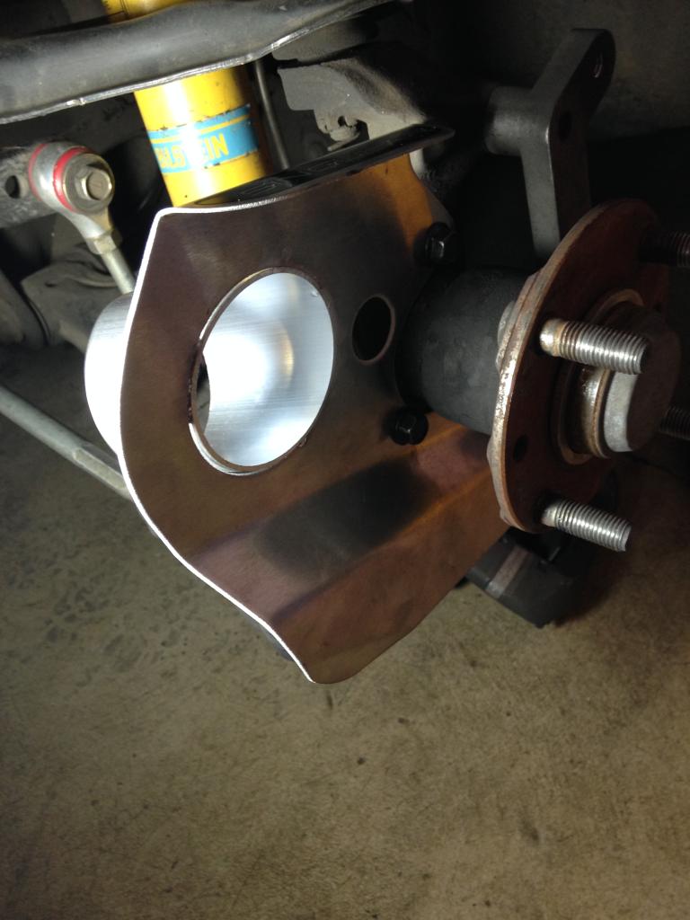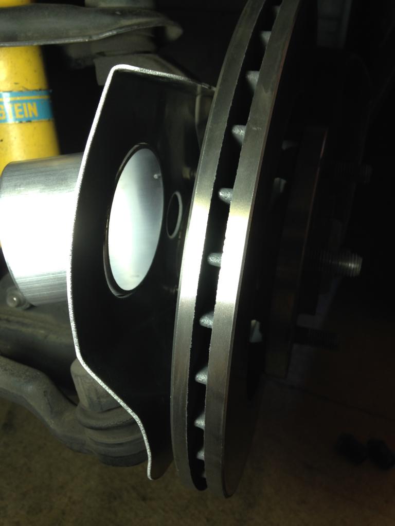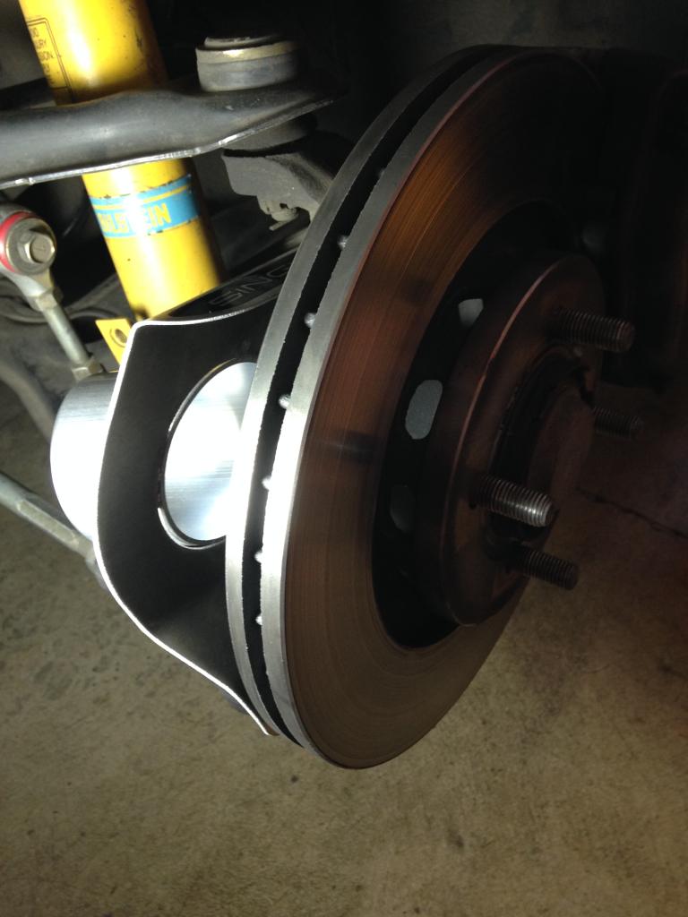 And bolted up. I started a timer as I began all this, the car had just rolled into the garage. I cheated by already having the stock dust shields removed years ago, but still. This picture was taken at 6 minutes 46 seconds.