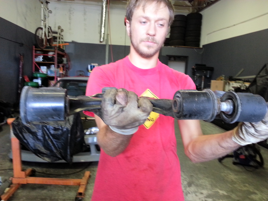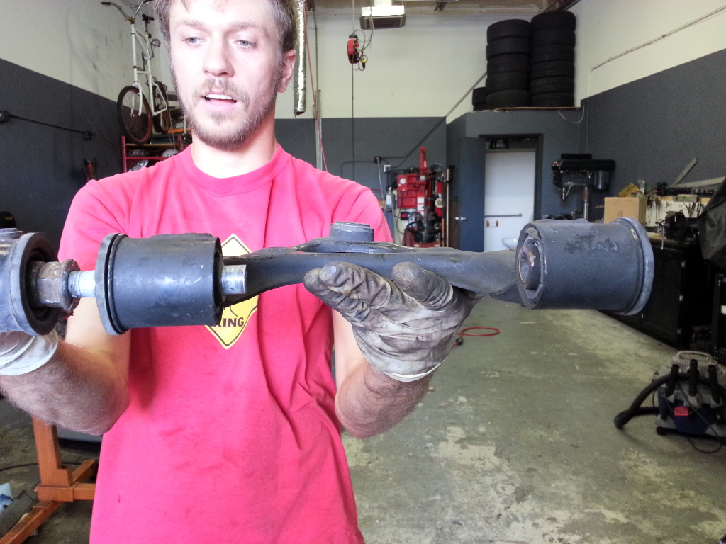 Ryan (gdnimrod) has been working on getting my new control arms in. The drivers side upper and lower control arms were so ridiculously bent that my castor was so messed up. Up next is putting in the lower control arm, installing poly bushings, new brake rotors, rebuilding my MSM calipers and installing them and then putting in SS brake lines.