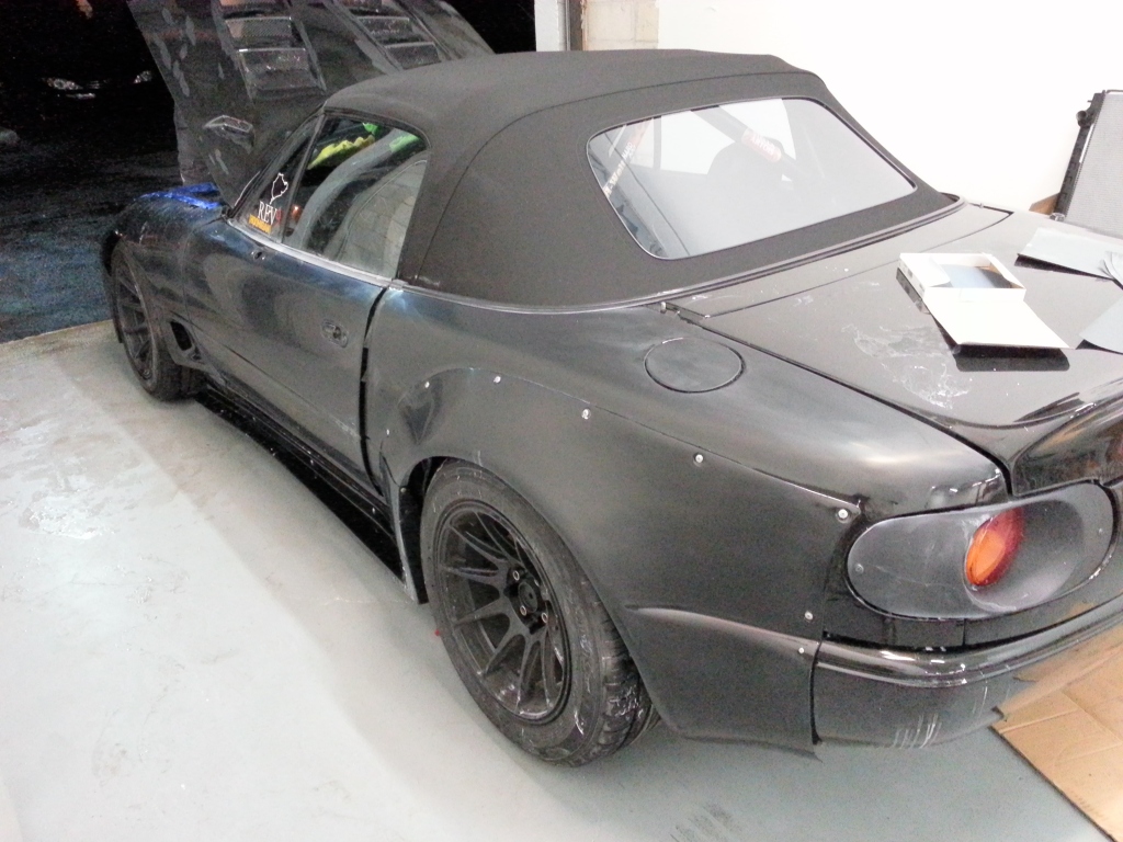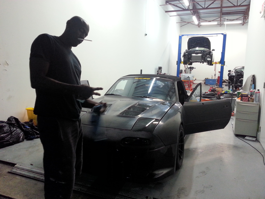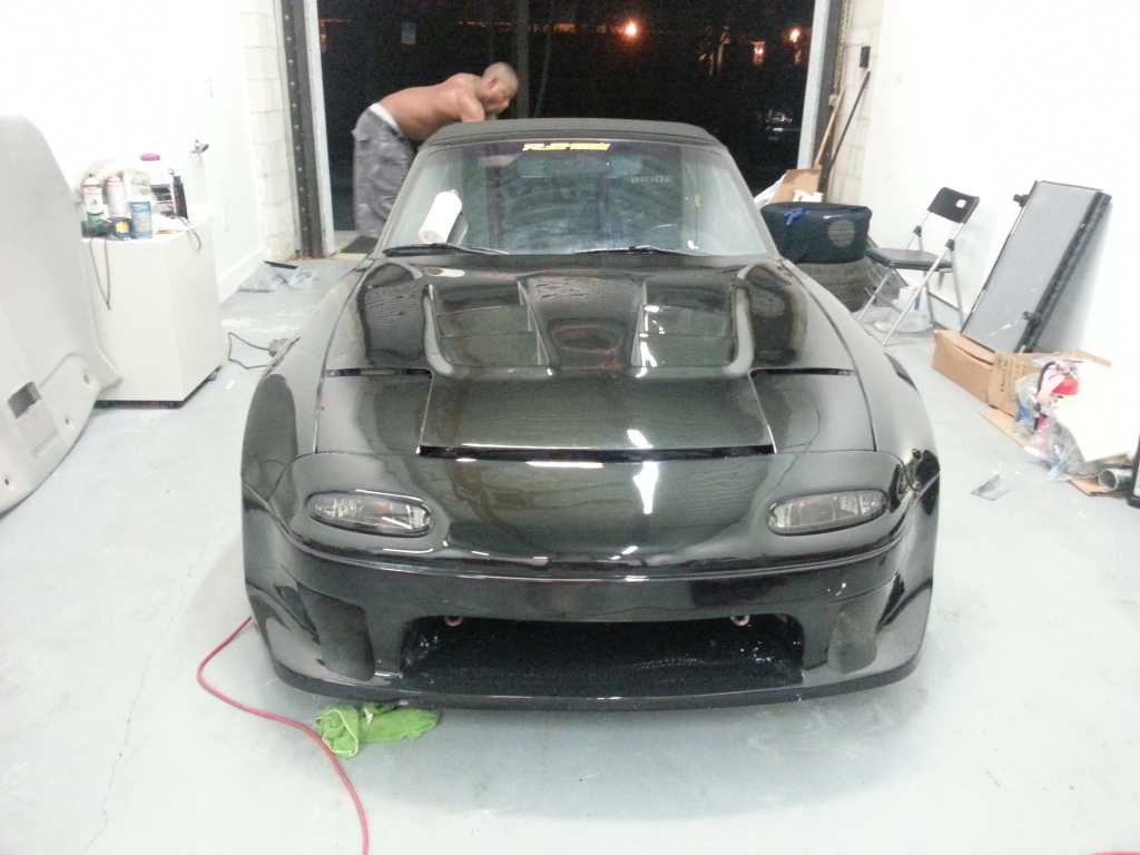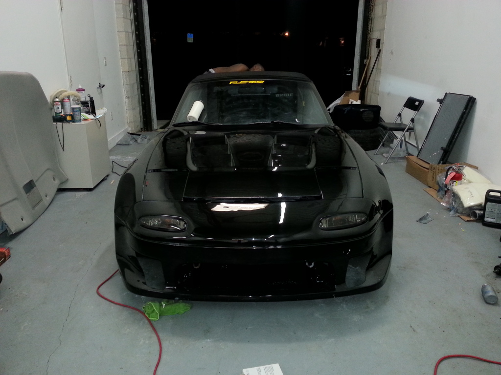 I had the pleasure of seeing this hemorrhoid with AIDS of a Miata the other night. I gotta say you did a great job! I absolutely love the rear bumper and the tail lights look great, can't wait for them to be finished. Now I still am a little bit hesitant on the cut outs on the front bumper but I'm sure you will deliver and they will look great when it's done. Don't get to anxious now and start wet sanding it. Let the crazy Jamaican do it all. Can't wait for this turd to be polished completely and finished