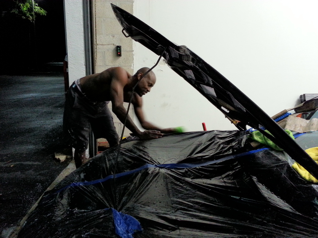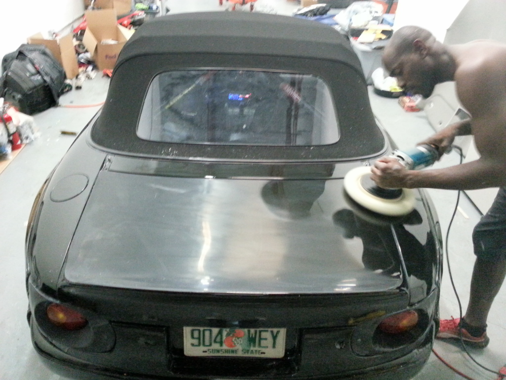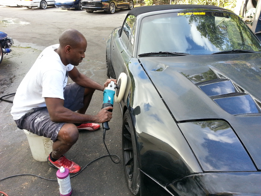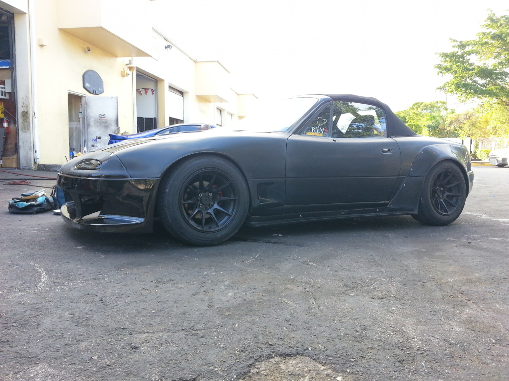 I had the pleasure of seeing this hemorrhoid with AIDS of a Miata the other night. I gotta say you did a great job! I absolutely love the rear bumper and the tail lights look great, can't wait for them to be finished. Now I still am a little bit hesitant on the cut outs on the front bumper but I'm sure you will deliver and they will look great when it's done. Don't get to anxious now and start wet sanding it. Let the crazy Jamaican do it all. Can't wait for this turd to be polished completely and finished